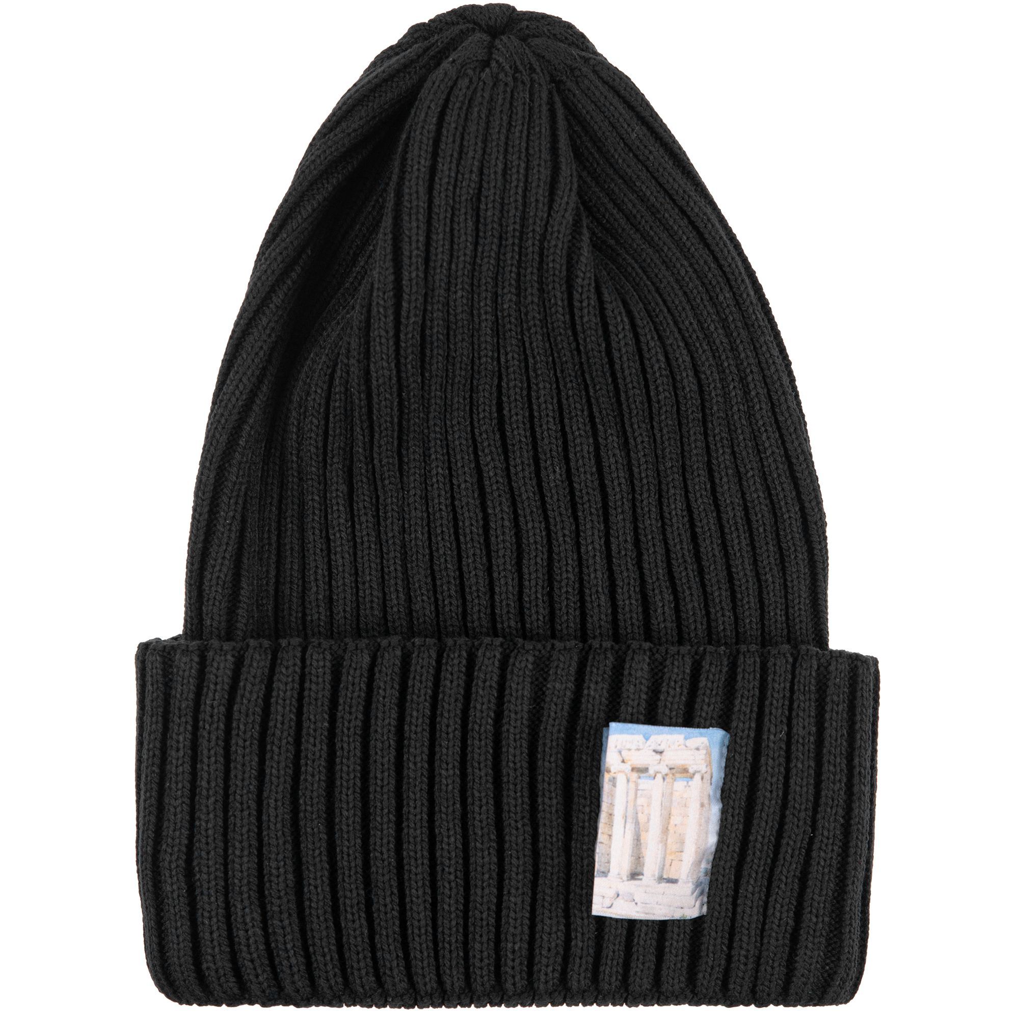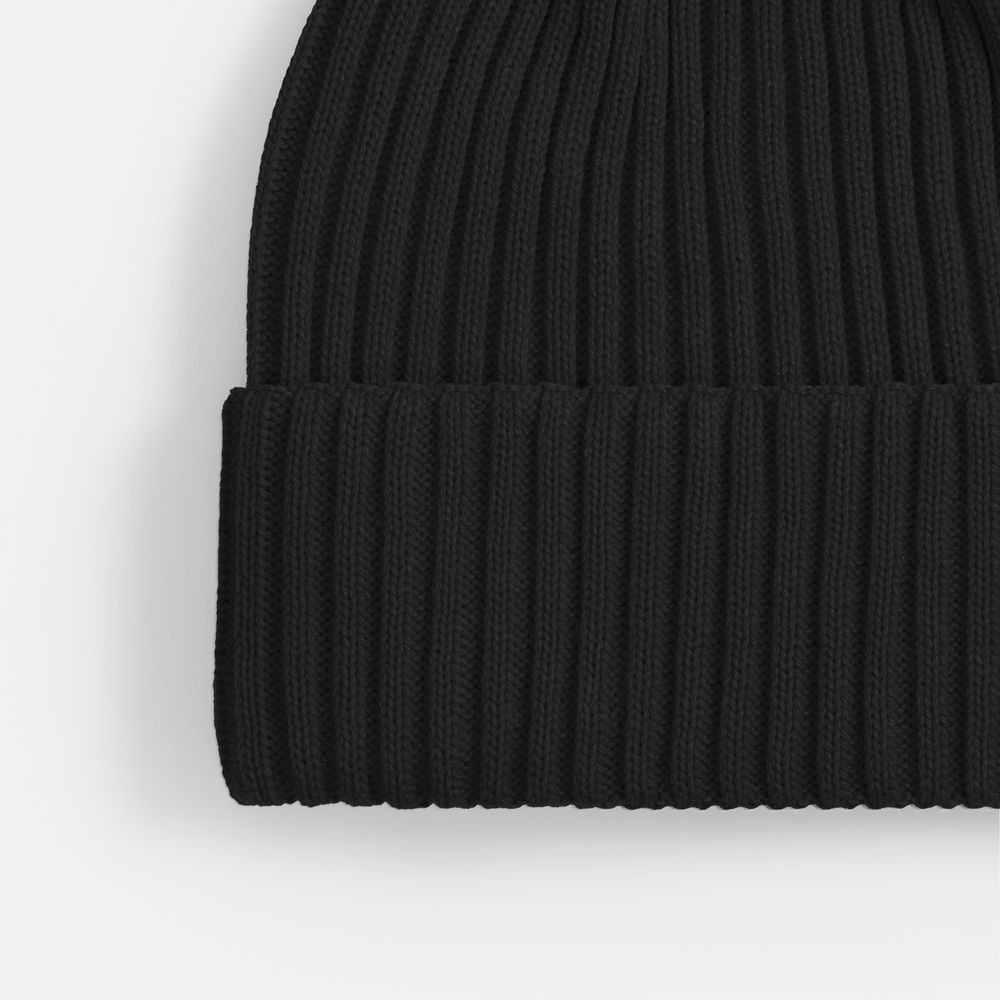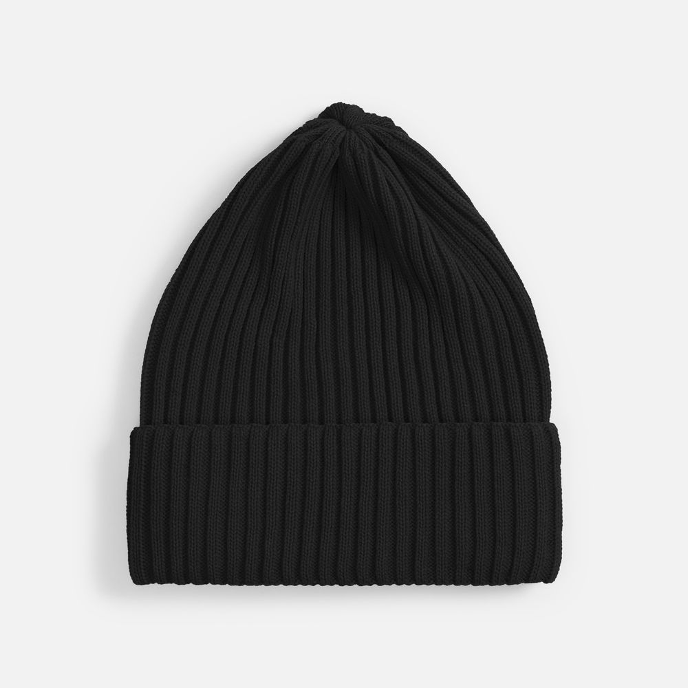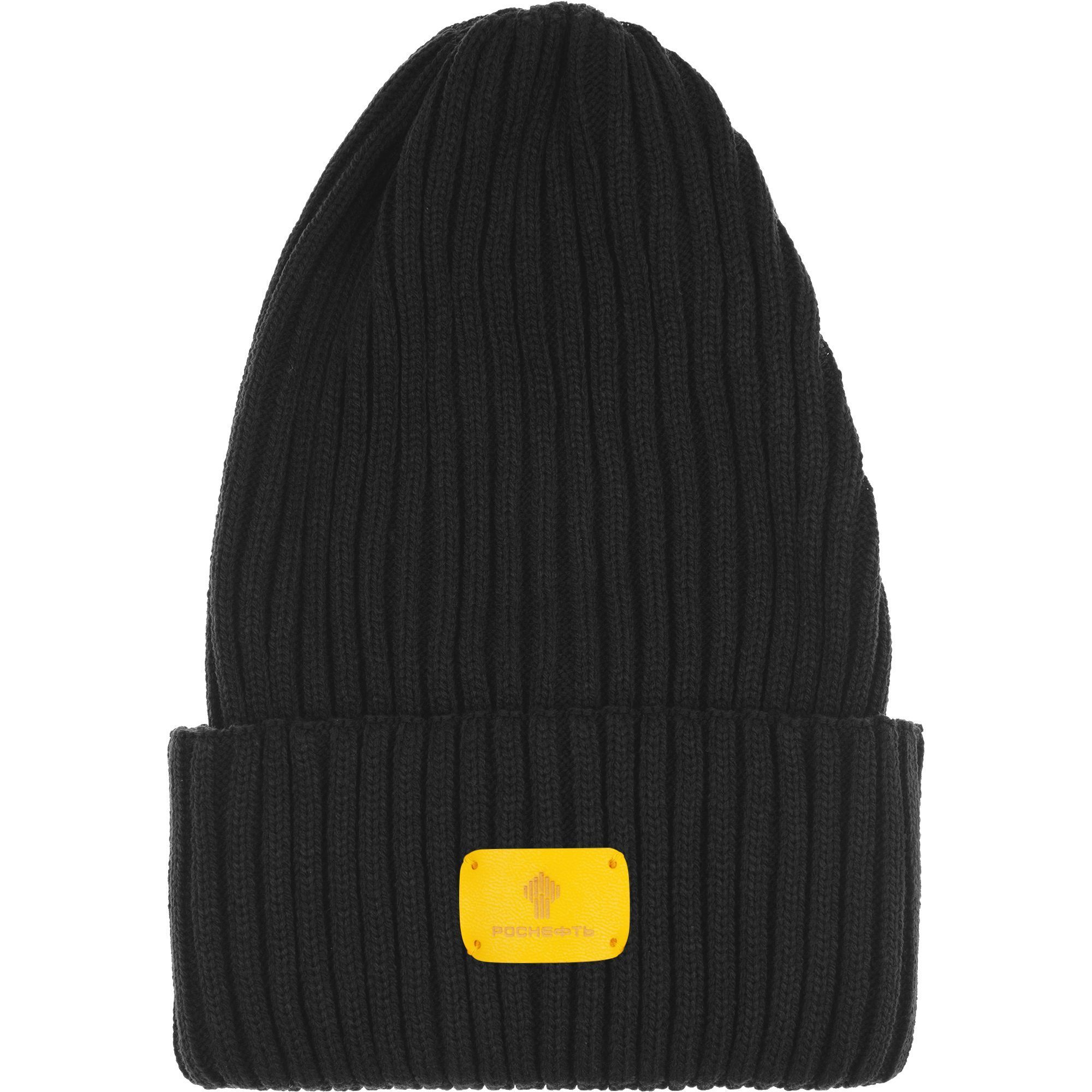 Однослойная шапка фактурной вязки с двойным отворотом.
