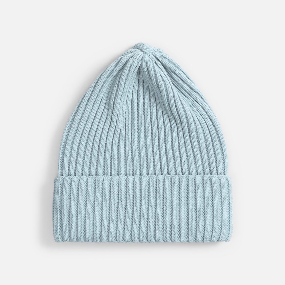 Однослойная шапка фактурной вязки с двойным отворотом.