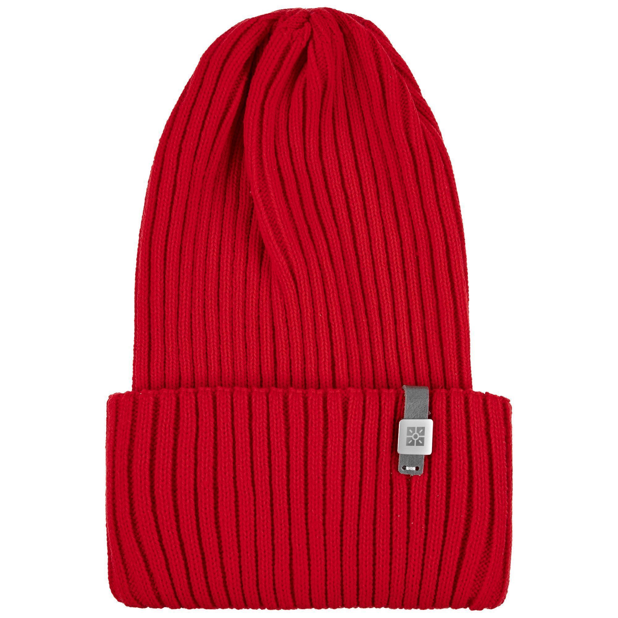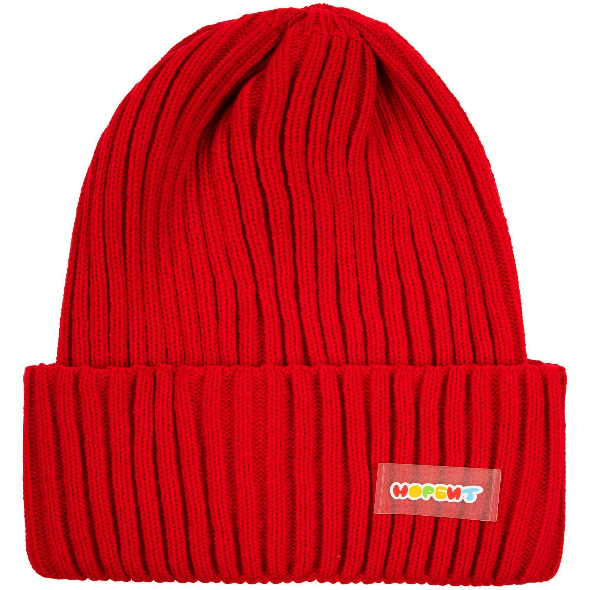 Однослойная шапка фактурной вязки с двойным отворотом.