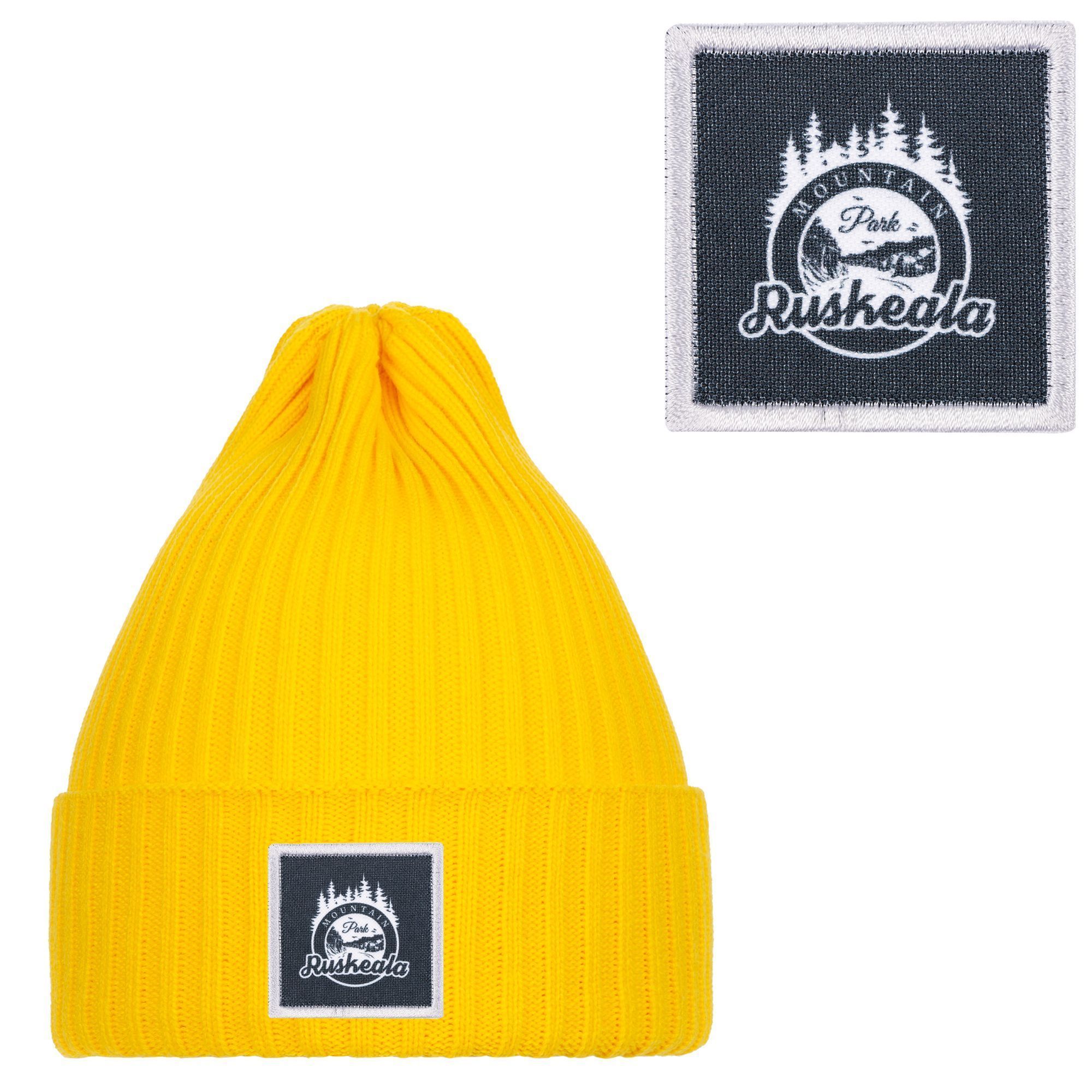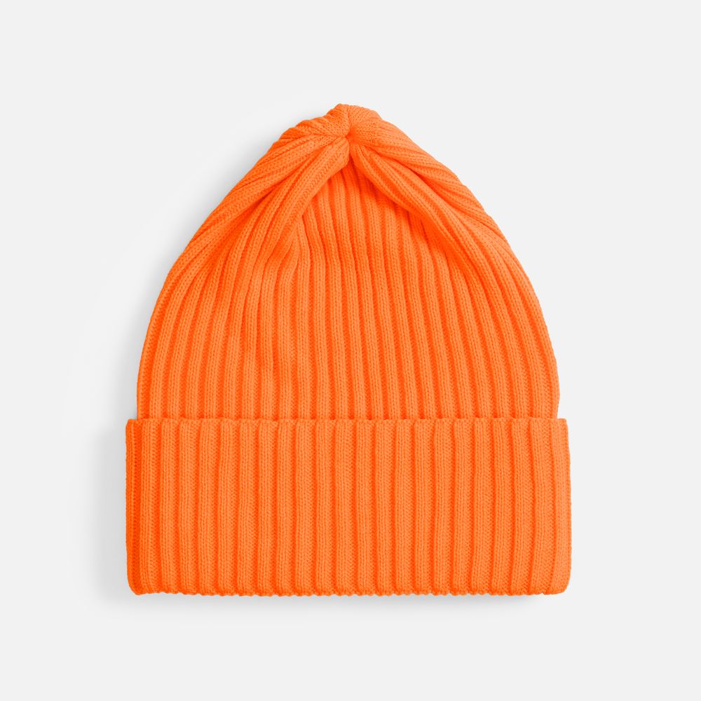 Однослойная шапка фактурной вязки с двойным отворотом.