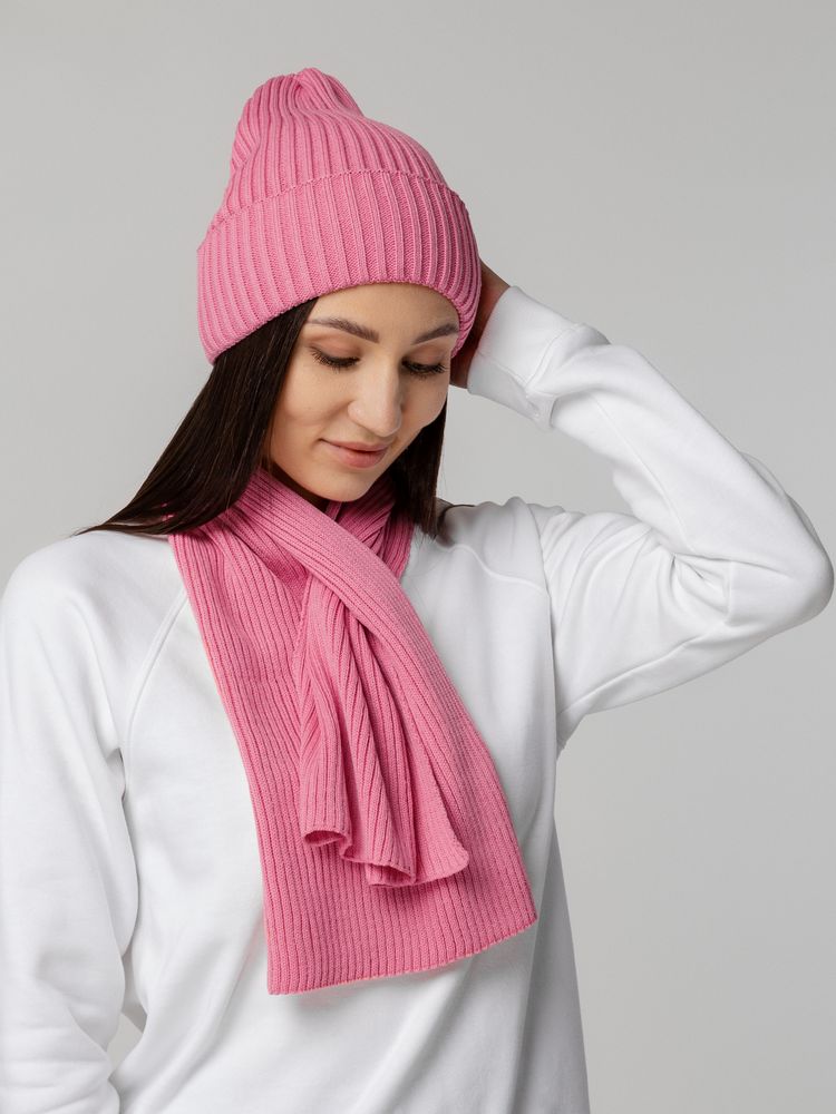Однослойная шапка фактурной вязки с двойным отворотом.