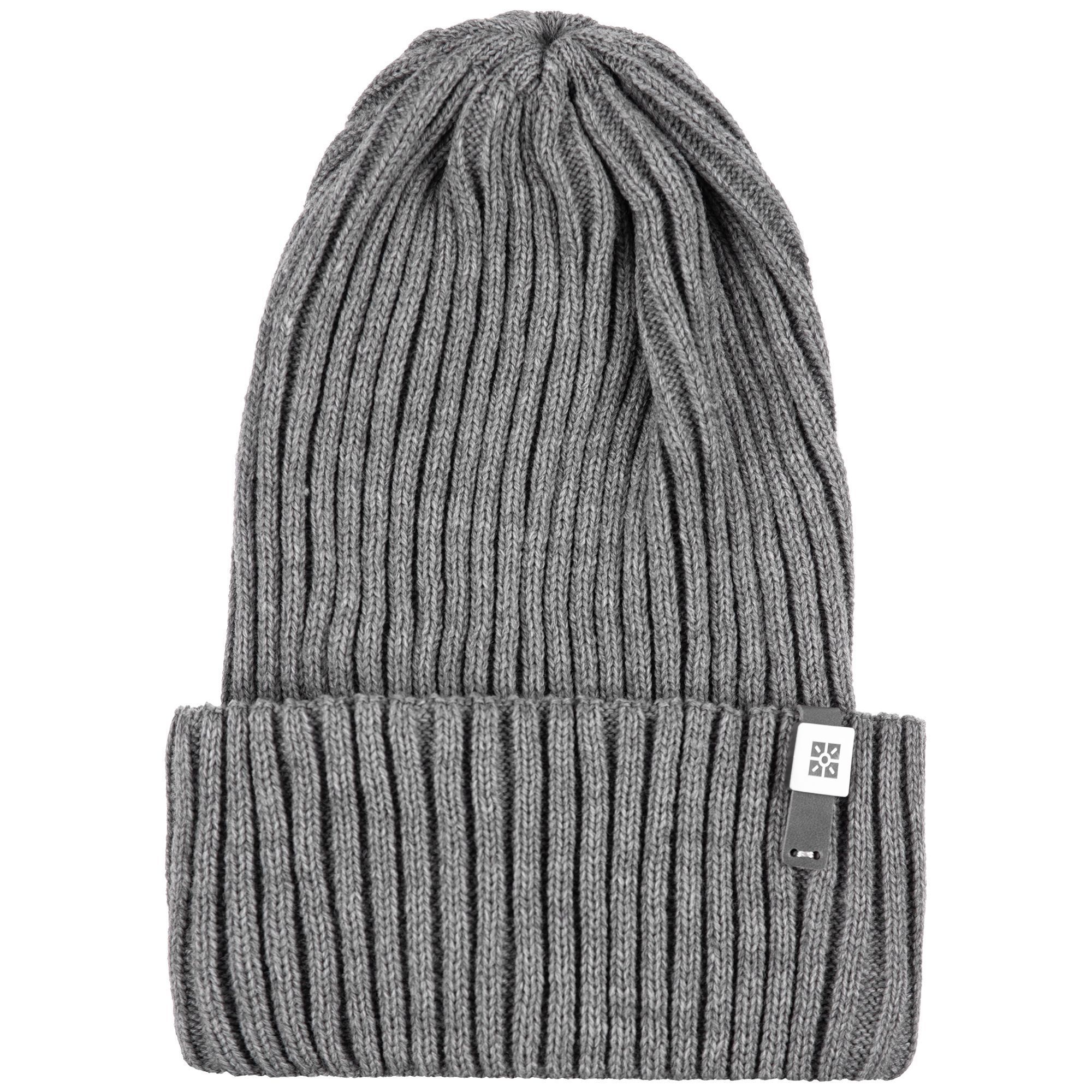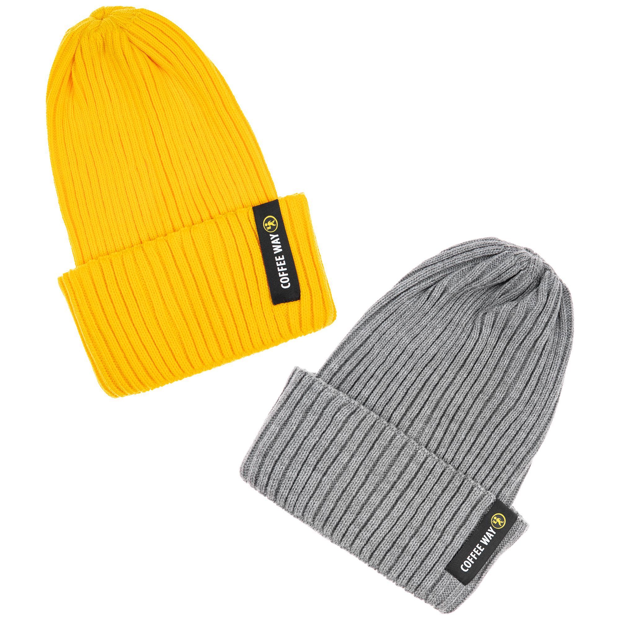 Однослойная шапка фактурной вязки с двойным отворотом.