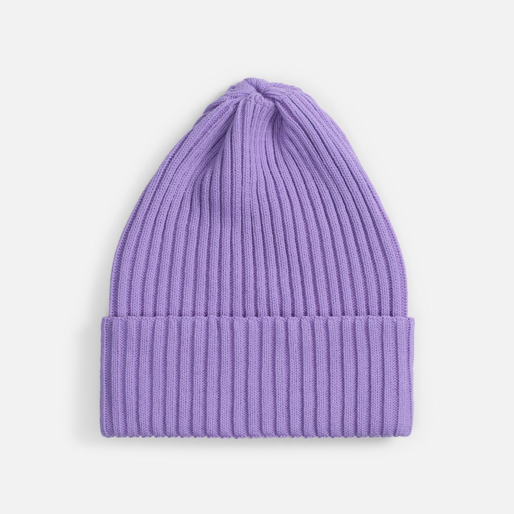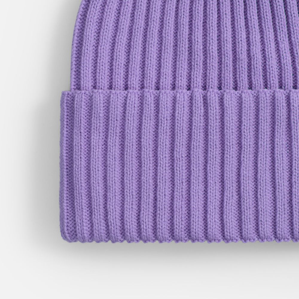 Однослойная шапка фактурной вязки с двойным отворотом.