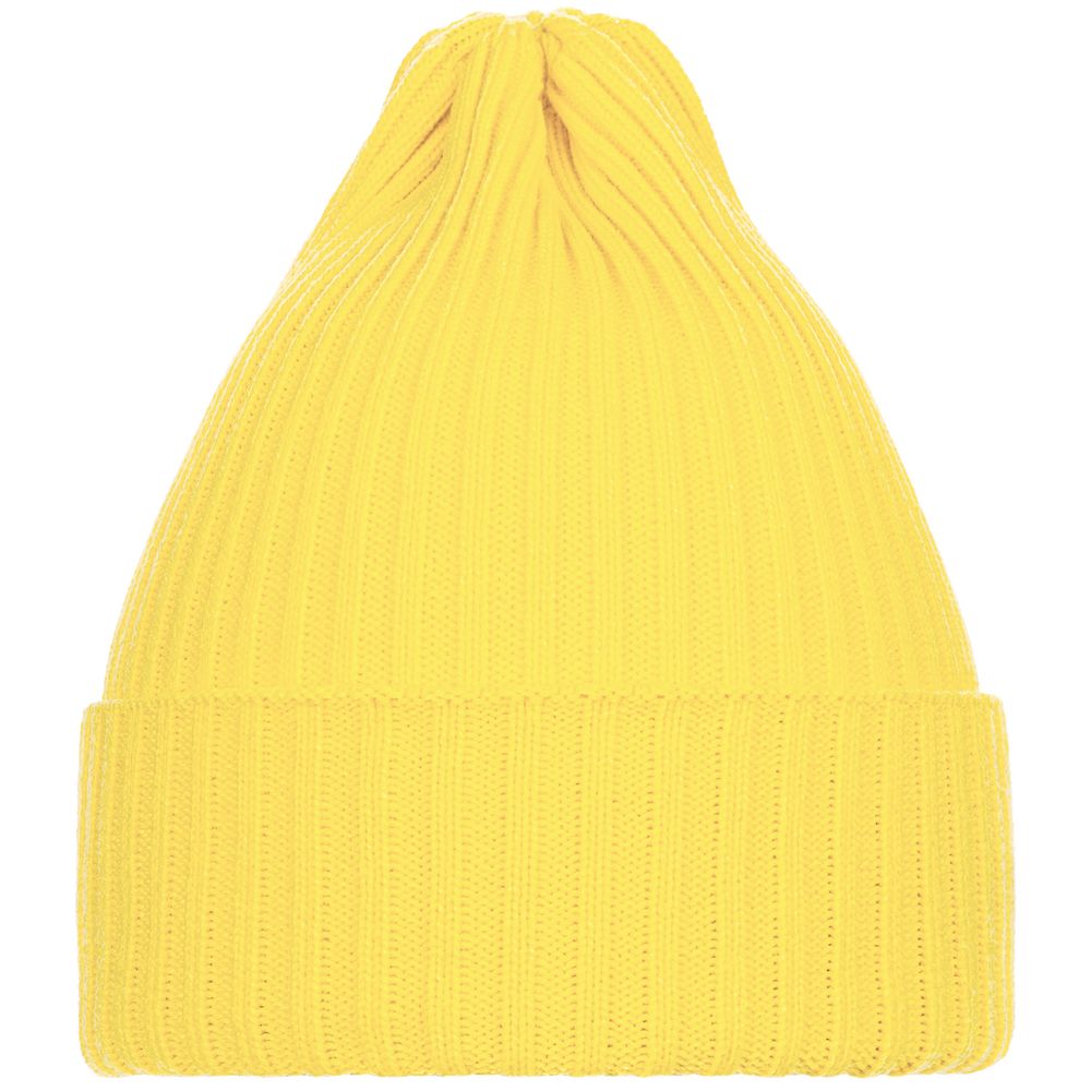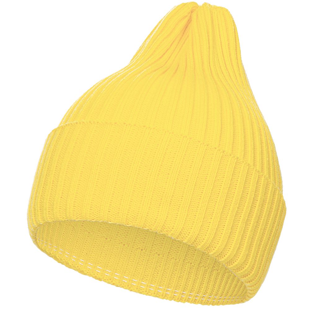 Однослойная шапка фактурной вязки с двойным отворотом.