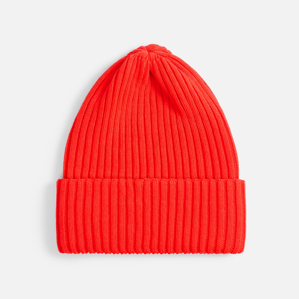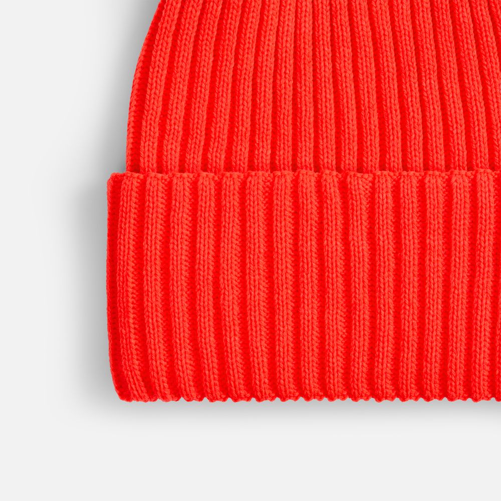 Однослойная шапка фактурной вязки с двойным отворотом.