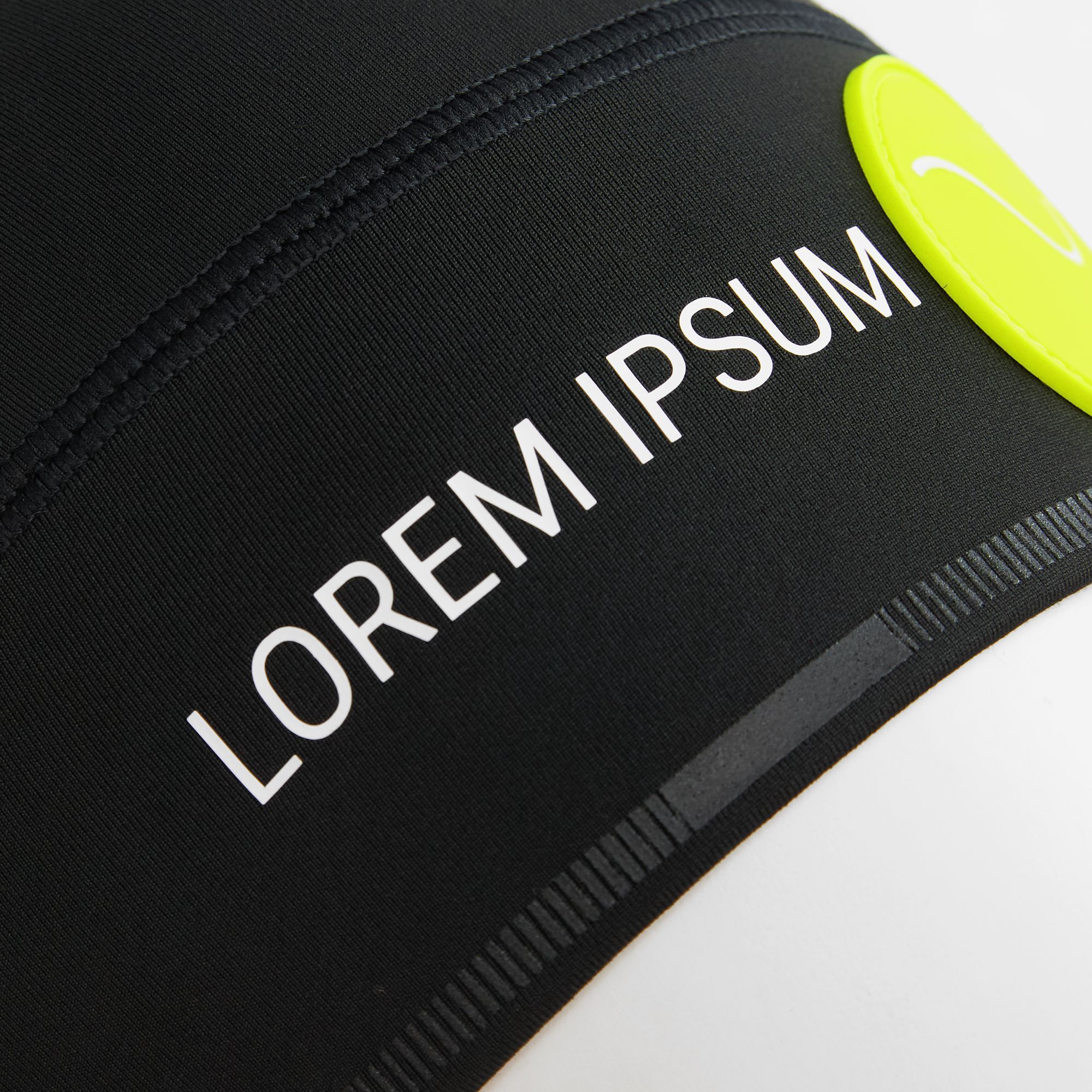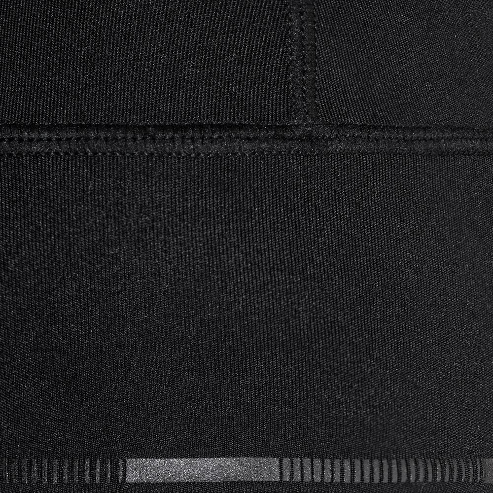 Шапка выполнена в черном цвете, но имеет светоотражающую полосу вдоль края, что улучшает видимость спортсмена в условиях плохой освещенности.