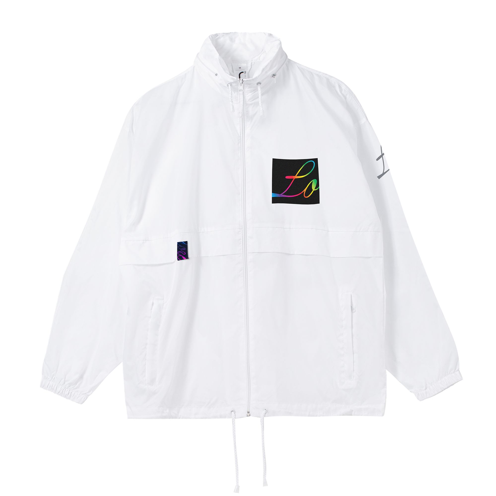 Ветровка унисекс на молнии и со складным капюшоном. Благодаря свободной посадке ветровка не облегает фигуру, создавая комфортный объем.