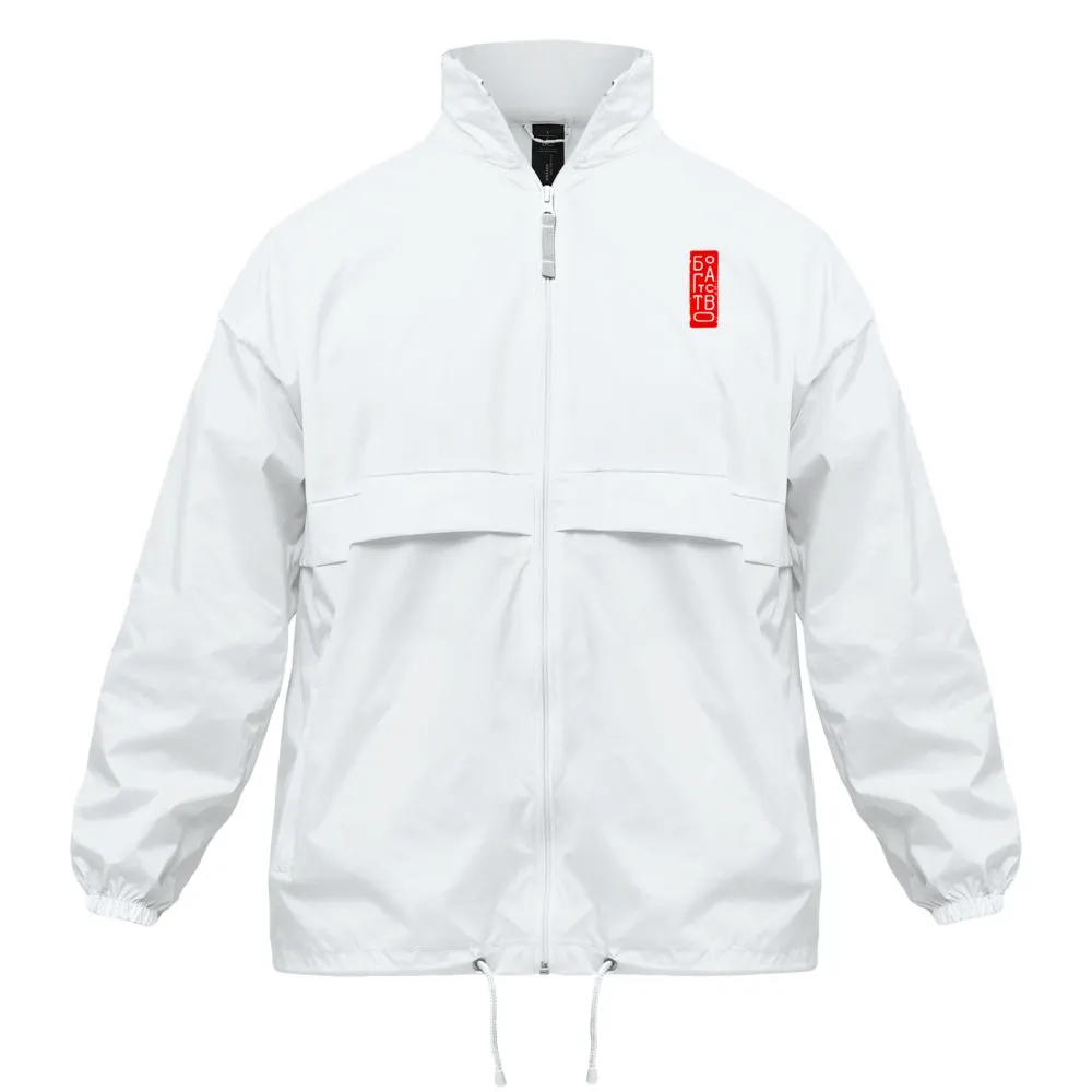 Иероглифы коллекции «Вечные ценности» выполнены в жанре каллиграфии на древнекитайском диалекте мандарин. Плавные линии символизируют внутренний баланс и фокусировку на главных жизненных ориентирах.Ветровка-оверсайз с приспущенной линией плеча на молнии, с капюшоном и одним карманом с правой стороны.