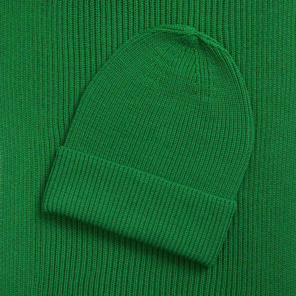 Удлиненная шапка с широким отворотом и фактурной вязкой мягко облегает голову, создавая элегантный силуэт. Широкий шарф с выразительным рельефом позволяет экспериментировать с драпировками, добавляя образу объем и динамику. Перчатки с аккуратной резинкой на манжете обеспечивают идеальную посадку и тактильный комфорт.