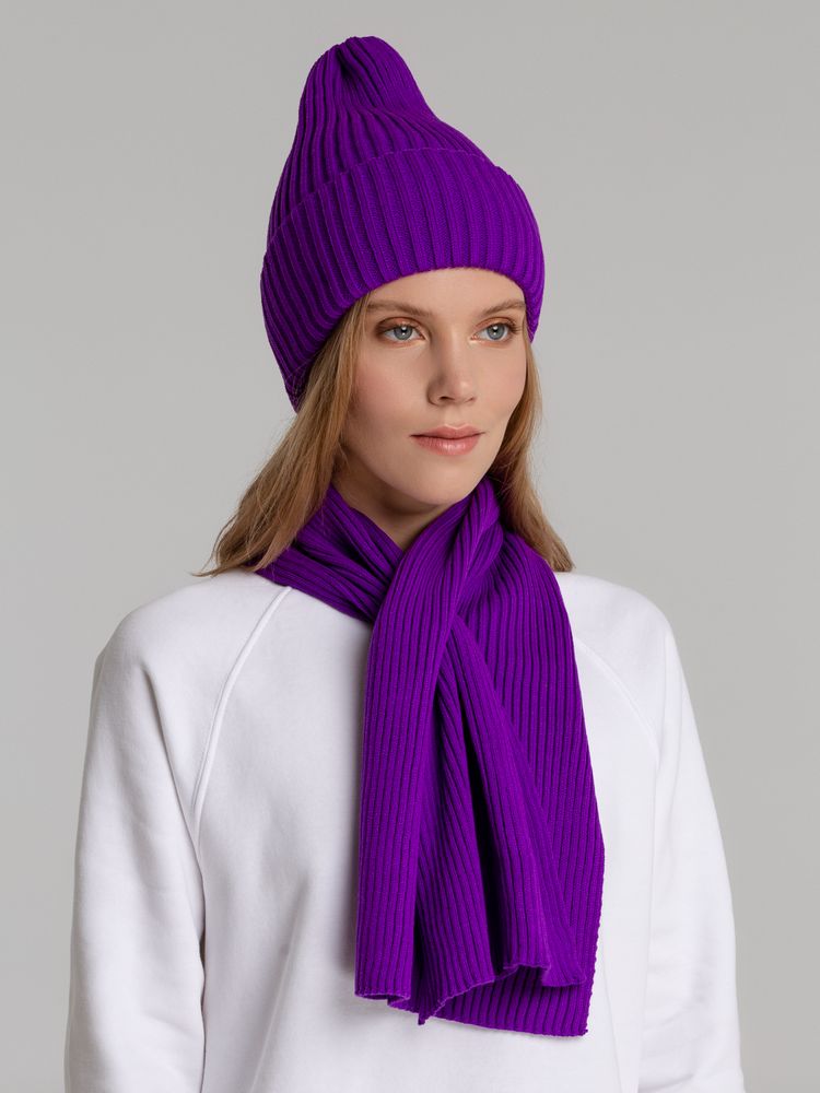 В набор входят удобный шарф с технологичным отверстием для быстрого завязывания, шапка с двойным отворотом и теплые двухслойные варежки с широкой манжетой. Все изделия связаны из акриловой пряжи, отличаются практичностью и элегантной простотой.