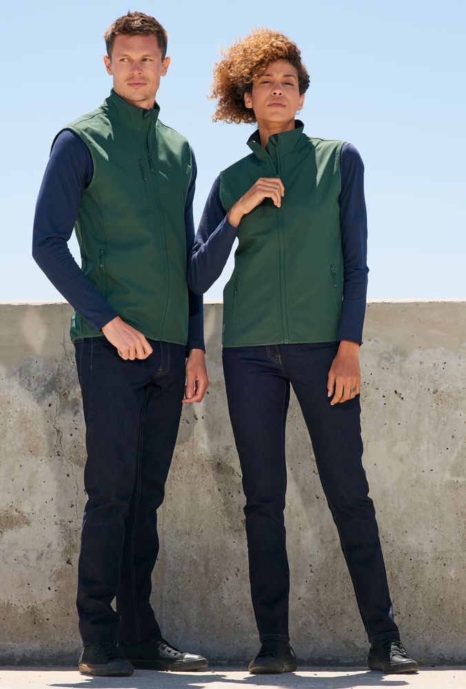 Мужской водонепроницаемый и ветрозащитный жилет на молнии из трехслойного софтшелла с флисовой изнанкой. Выполнен из переработанного полиэстера.
