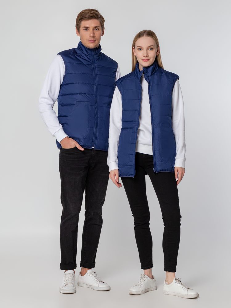 Утепленный стеганый жилет унисекс из ткани дюспо, которая считается лучшим современным материалом для изготовления курток, ветровок и плащей. Это прочный материал из полимерных волокон с защитной пропиткой, который не впитывает влагу и обеспечивает хорошую циркуляцию воздуха.