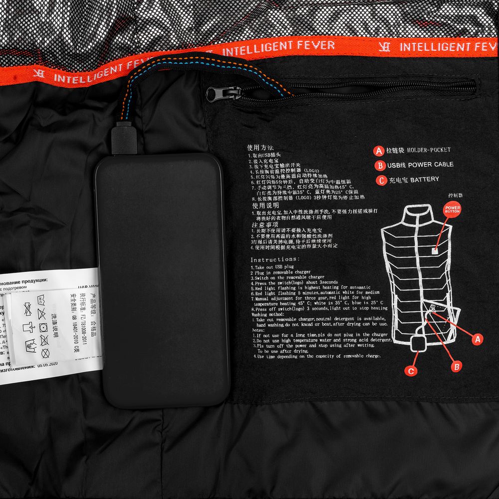 Утепленный жилет со встроенным нагревательным элементом из углеродного волокна в области спины и шеи. Работает от внешнего аккумулятора (в комплект не входит), подарит ощущение тепла и комфорта в любую погоду.