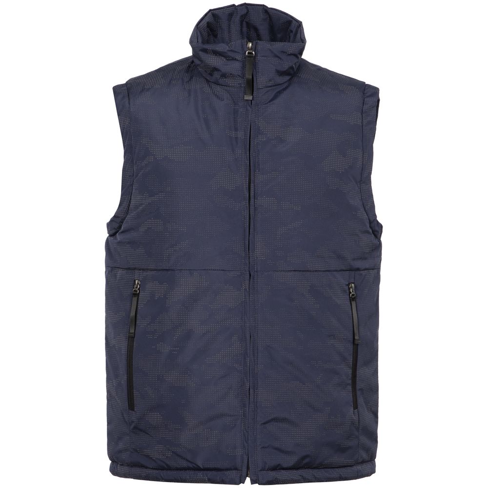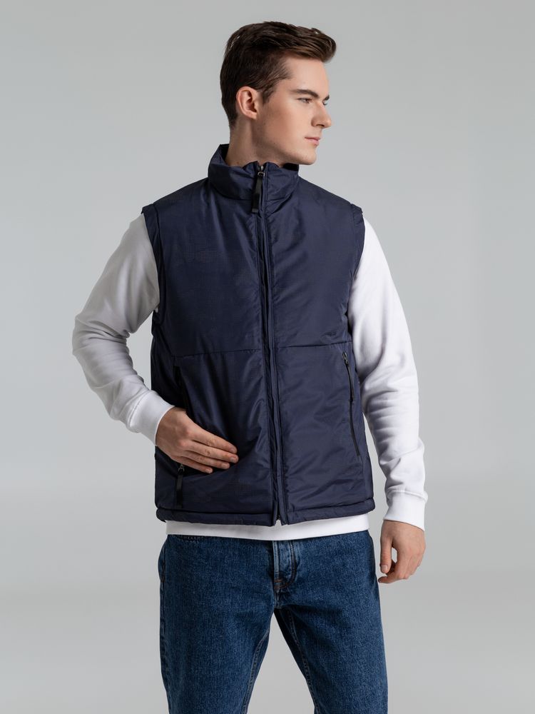 Жилет с воротником-стойкой и светоотражающим рисунком.