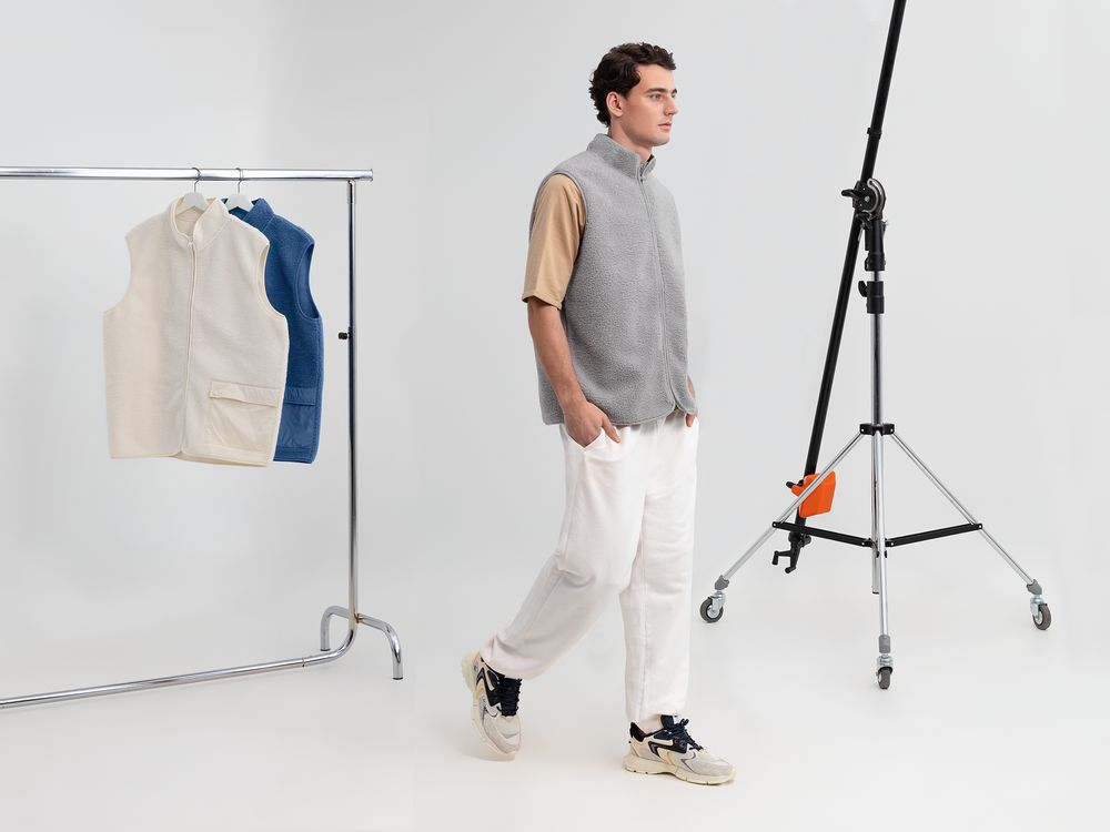 Жилет на молнии из современного двухслойного материала — модный искусственный мех снаружи и уютный флис внутри. Накладной карман из гладкого нейлона создает заметный визуальный контраст и делает жилет Oblako по-настоящему стильным предметом гардероба.
