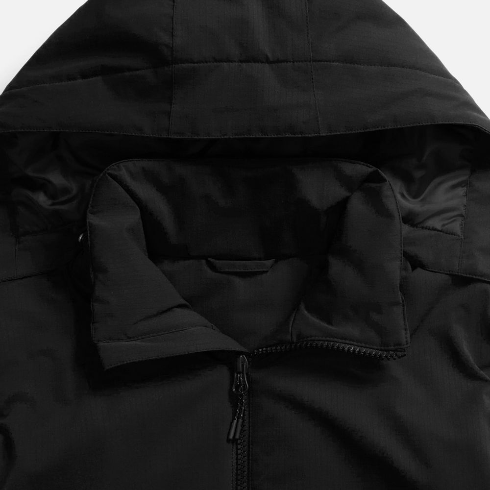 • Отстегивающийся капюшон с утяжкой и кнопками для плотного прилегания и защиты горла