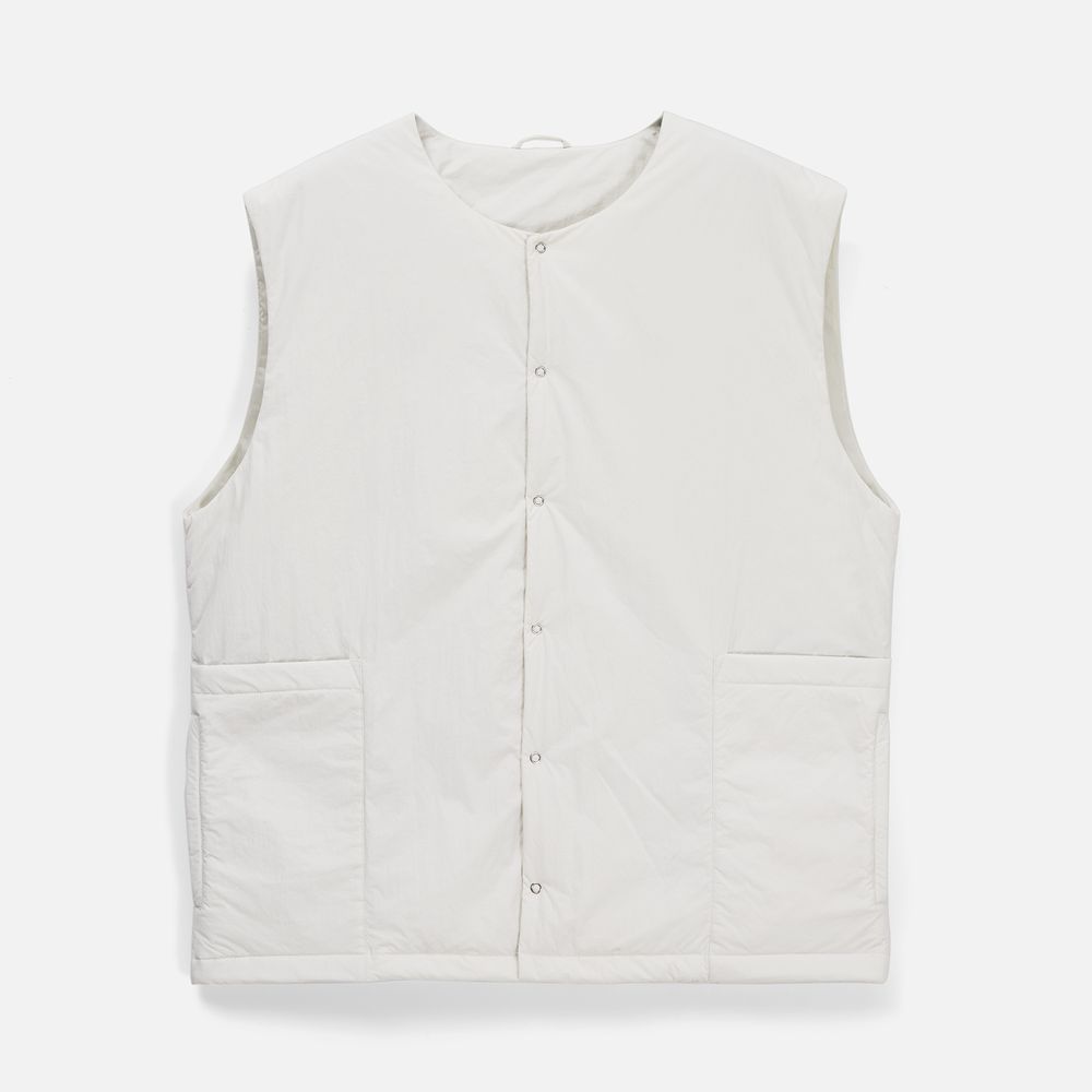 Коллекция верхней одежды, что легко согревает и обволакивает, как теплый и ласковый ветер, и в то же время ветра совсем не боится. Жилет из нейлона с текстурой мятого шелка создает приятный микроклимат, в котором воздушность сочетается с комфортной терморегуляцией.