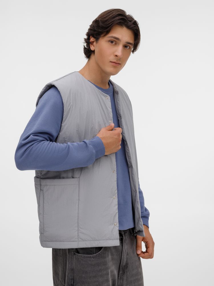 Коллекция верхней одежды, что легко согревает и обволакивает, как теплый и ласковый ветер, и в то же время ветра совсем не боится. Жилет из нейлона с текстурой мятого шелка создает приятный микроклимат, в котором воздушность сочетается с комфортной терморегуляцией.