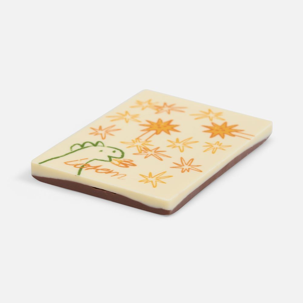 Создайте уникальное поздравление на плитке шоколада с помощью полноцветной печати пищевыми красителями. Для подготовки заказа достаточно загрузить макет, выполненный в конструкторе.Состав: сахар, какао-масло, сухое молоко, какао-масса, эмульгатор (Е-322-подсолнечный лецитин), ароматизатор натуральный (ваниль).