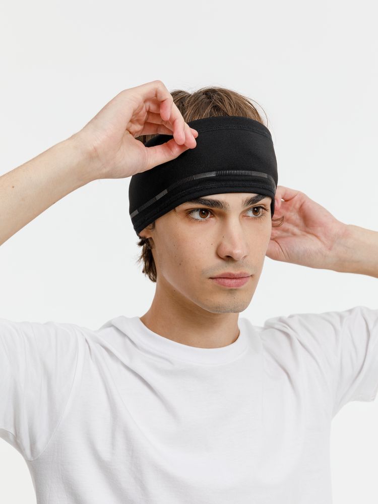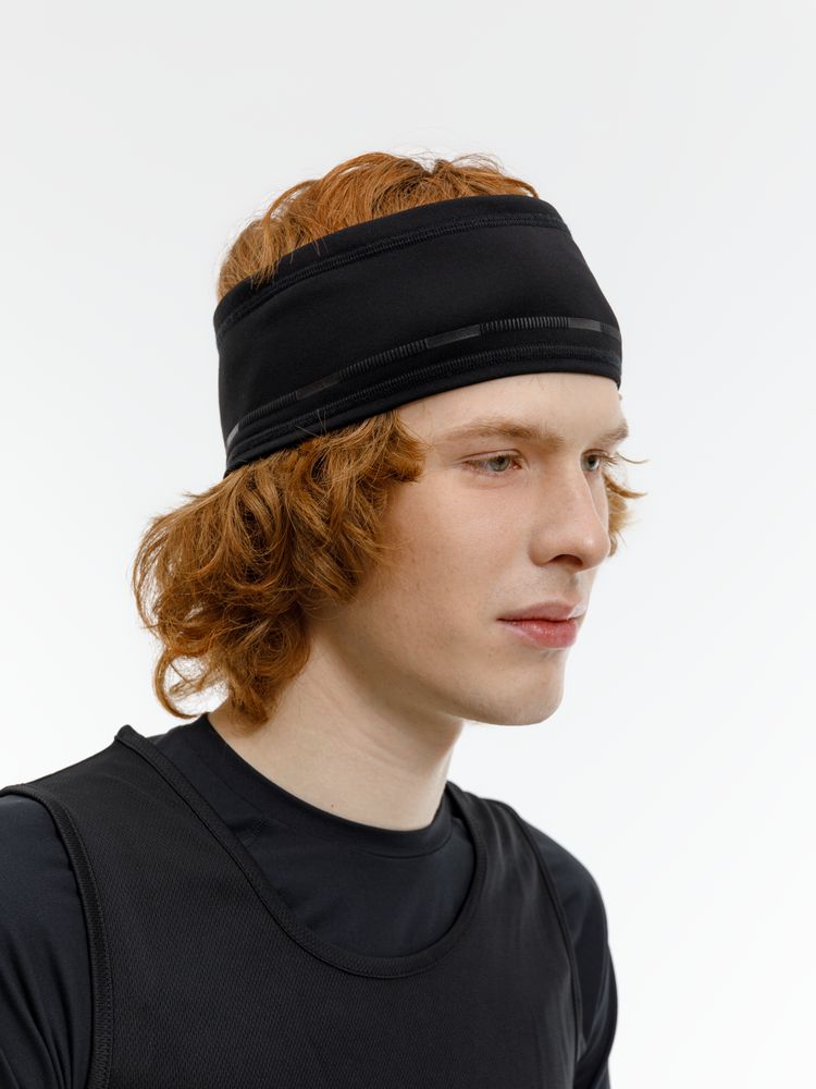 Повязка выполнена в черном цвете, но имеет светоотражающую полосу вдоль края, что улучшает видимость спортсмена в условиях плохой освещенности.