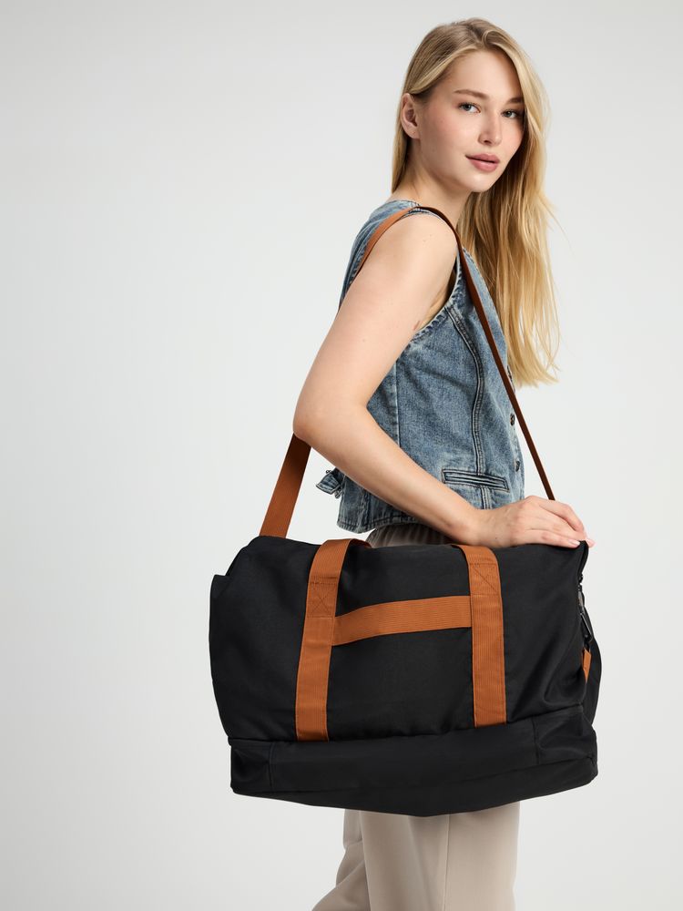 Дорожная сумка Incluso — надежный спутник в краткосрочной поездке, будь то командировка или выезд на уикенд. Также она с легкостью станет незаменима для спортзала. Изготовлена из прочного материала, оснащена удобными ручками и регулируемым плечевым ремнем, что обеспечивает комфорт при переноске. В сумке предусмотрено специальное отделение для обуви.