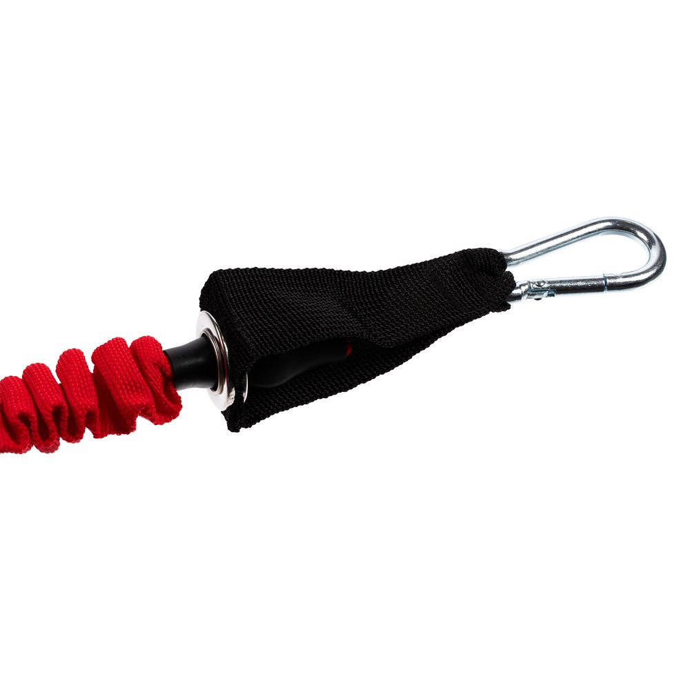 Каждый эспандер оснащен надежным металлическим карабином с дополнительным фиксатором, который гарантирует безопасность при выполнении упражнений и позволить плавно натягивать резинку. Инвентарь можно закрепить на двери при помощи дверного анкера (в комплекте) и с удобством добавить в тренировку больше разнообразия.