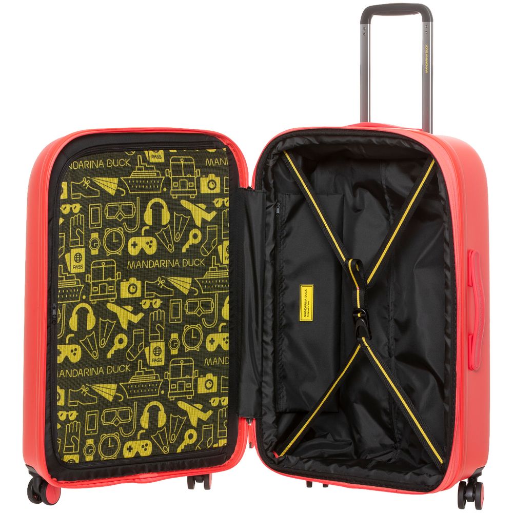 Коллекция чемоданов из поликарбоната Logoduck+ стала настоящим бестселлером: обтекаемые изящные формы, колеса в тон корпуса, крупный логотип бренда, подкладка с принтом и яркие цвета делают их уникальными в своем роде. Упаковочные ремни, разделитель на молнии и дополнительный карман для мелочей помогут аккуратно упаковать все необходимые вещи для поездки на 1-2 недели.
