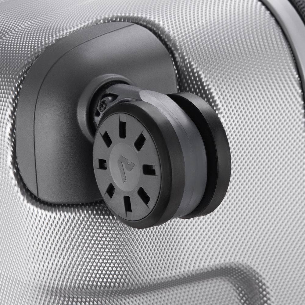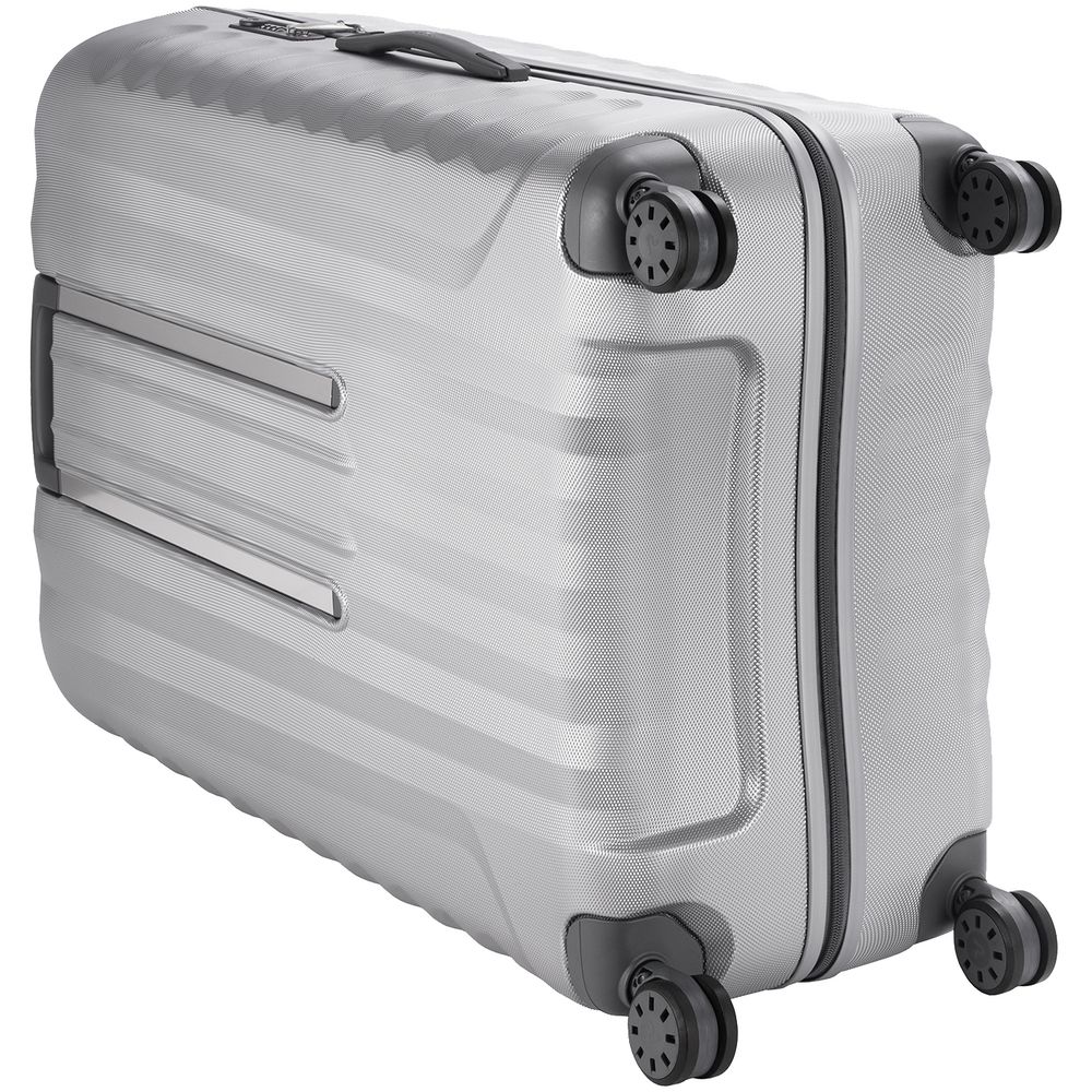 Корпус изготовлен из ударостойкого поликарбоната с покрытием, имитирующим алмазные грани, — такая технология препятствует появлению царапин и делает чемодан еще более прочным и выносливым.