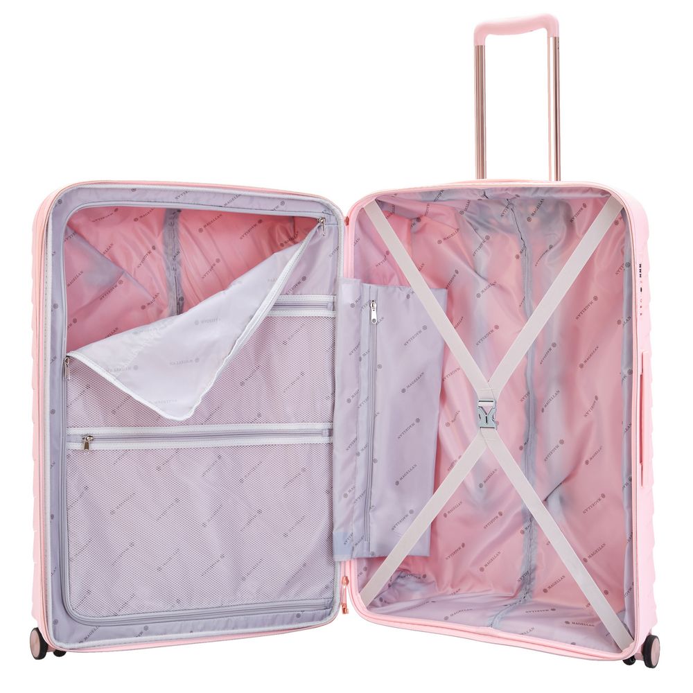 Чемодан из женственной коллекции Victoria имеет стильную обтекаемую форму и узор с плавными волнами, которые выделяют его среди других. Нежные оттенки придают чемодану элегантный вид, подчеркивая индивидуальность и хороший вкус путешественницы.