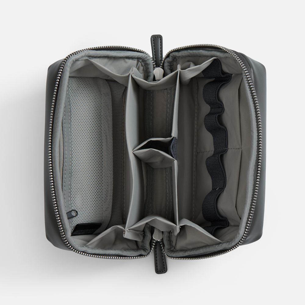 Идеален для косметики, гигиенических принадлежностей, лекарств, зарядных устройств, наушников, кабелей, внешнего аккумулятора и другой мелкой электроники. Все необходимое аккуратно размещается внутри — легко найти благодаря панели с эластичными держателями и продуманной системе отделений. Внутренний карман на молнии позволяет надежно хранить флешки, сим-карты или другие мелкие предметы. Молния с широким раскрытием обеспечивает удобный доступ к содержимому.