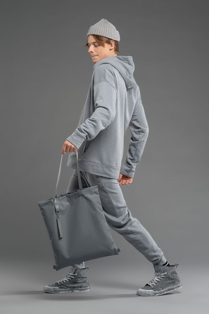 Прочный и вместительный трансформер — шопер и рюкзак на шнурках — разработан в рамках единой коллекции одежды и аксессуаров, поэтому легко комбинируется с ее элементами. Специально спроектированные лекала и технологии пошива открывают простор для любых вариантов кастомизации и нанесения изображений. На видимой части изделий нет лейблов с айдентикой бренда, а название бренда с уходника легко удалить.