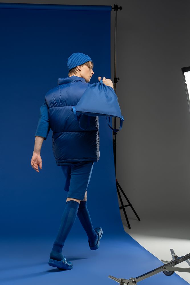 Прочный и вместительный трансформер — шопер и рюкзак на шнурках — разработан в рамках единой коллекции одежды и аксессуаров, поэтому легко комбинируется с ее элементами. Специально спроектированные лекала и технологии пошива открывают простор для любых вариантов кастомизации и нанесения изображений. На видимой части изделий нет лейблов с айдентикой бренда, а название бренда с уходника легко удалить.