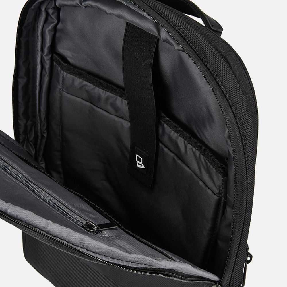 - В основном отделении защитный карман для ноутбука с диагональю до 15,6" и карман для планшета