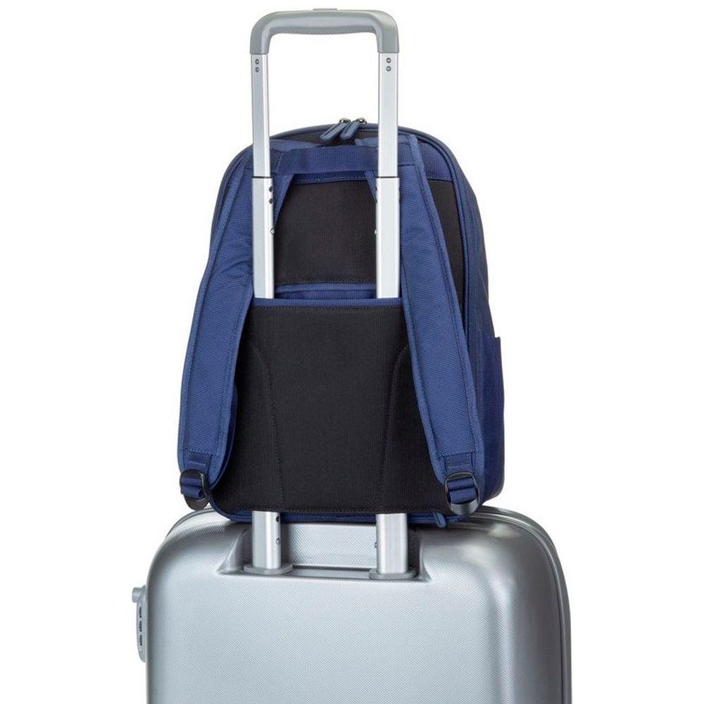 Это универсальная модель как для города или работы, так и для путешествий. Благодаря умному карману рюкзак легко закрепить на телескопической ручке чемодана.