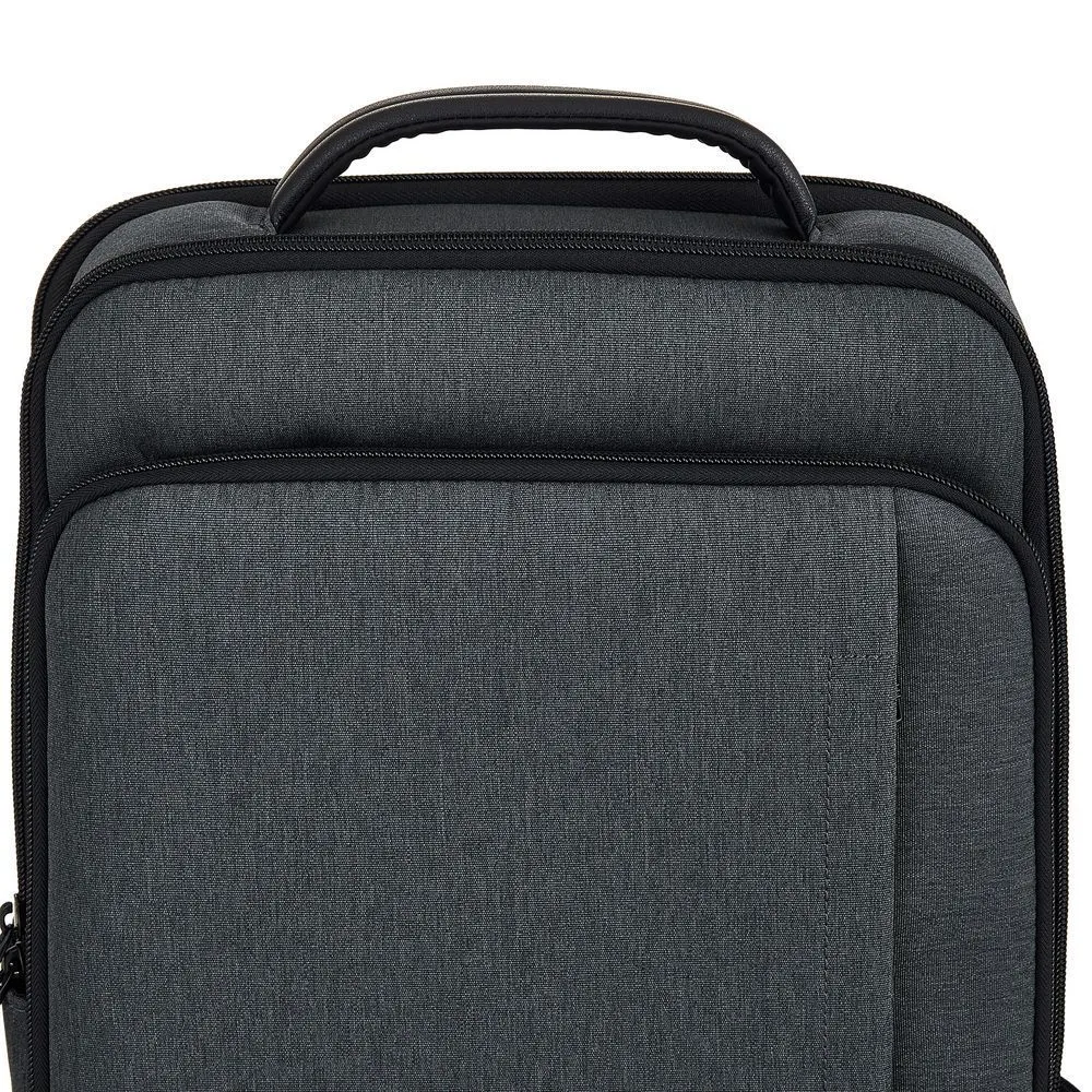 Городской рюкзак для ноутбука Santiago Slim изготовлен из влагозащищенного полиэстера и микрофибры. Карман для бутылок, удобная спинка с мягкими вставками, лямка для крепления к чемодану, эргономичные плечевые ремни и внешний USB-порт делают этот рюкзак незаменимым аксессуаром для работы, поездок и повседневных дел.