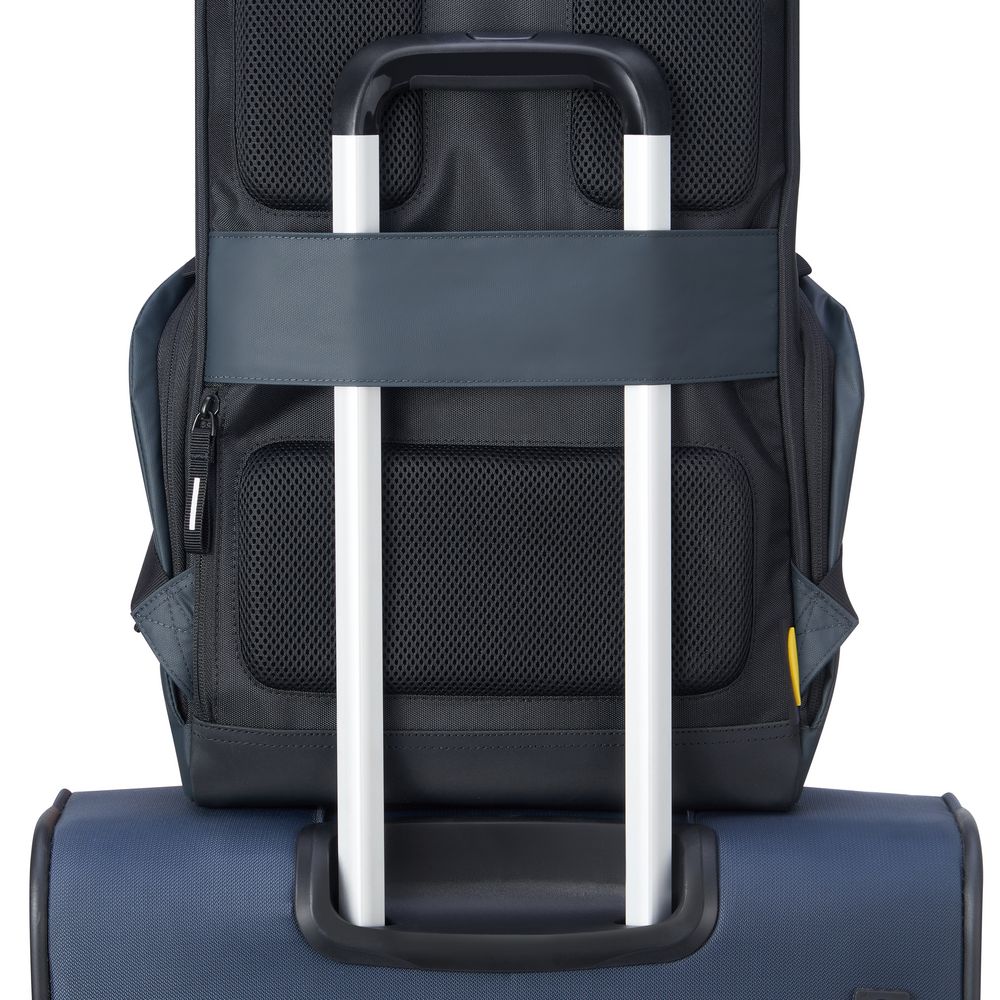 Верх и боковые карманы из водонепроницаемого материала защитят содержимое рюкзака в непогоду. Два усиленных кармана с мягкой подкладкой для ноутбука и планшета в основном отделении, оснащенном широко открывающимися молниями для легкого доступа. Карман с RFID-защитой на клапане и небольшой карман на спинке для надежной защиты личных вещей.