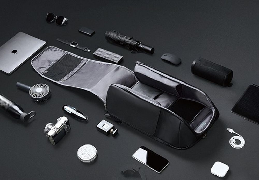 - Анатомическая конструкция рюкзака вместе с широкими лямками и поперечным ремнем на магнитной пряжке перераспределяют часть нагрузки с плеч и спины на талию и бедра, в результате чего вес рюкзака воспринимается на 20-25% легче, чем при использовании стандартных моделей