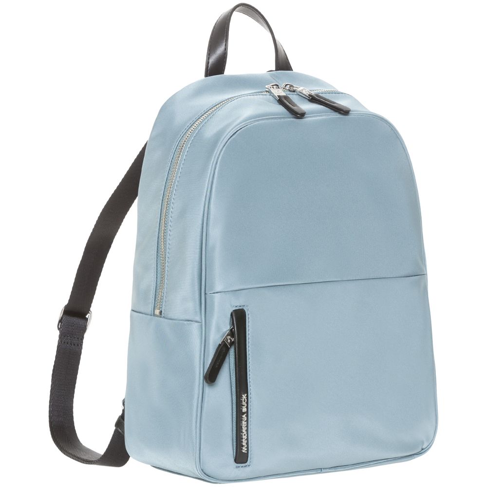 Изготовлен из гладкого влагостойкого нейлона, а также дополнен привлекательной фурнитурой из экокожи и металлизированным логотипом бренда.