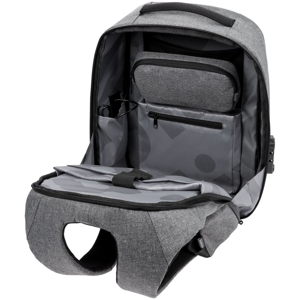 В конструкции InGreed все продумано до мелочей: ценное содержимое рюкзака всегда будет под надежной защитой, ведь за это отвечают сразу несколько специальных разработок. Конструкция наружных и боковых стенок рюкзака под названием sandwichPro состоит из четырех слоев: верхний Waterproof TEX не пропускает влагу, а остальные спасут от порезов. Смещенная к спинке молния центрального отделения осложняет нежелательный доступ к содержимому, а дополнительную безопасность гарантирует замок TSA с трехзначным цифровым кодом.