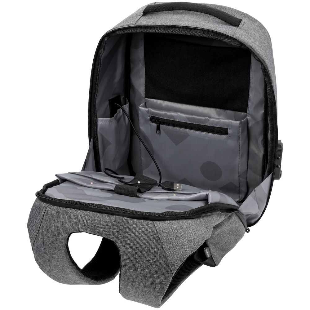 - Внешний USB-порт для зарядки гаджетов (внутри рюкзака — провод для подключения и карман для размещения аккумулятора)