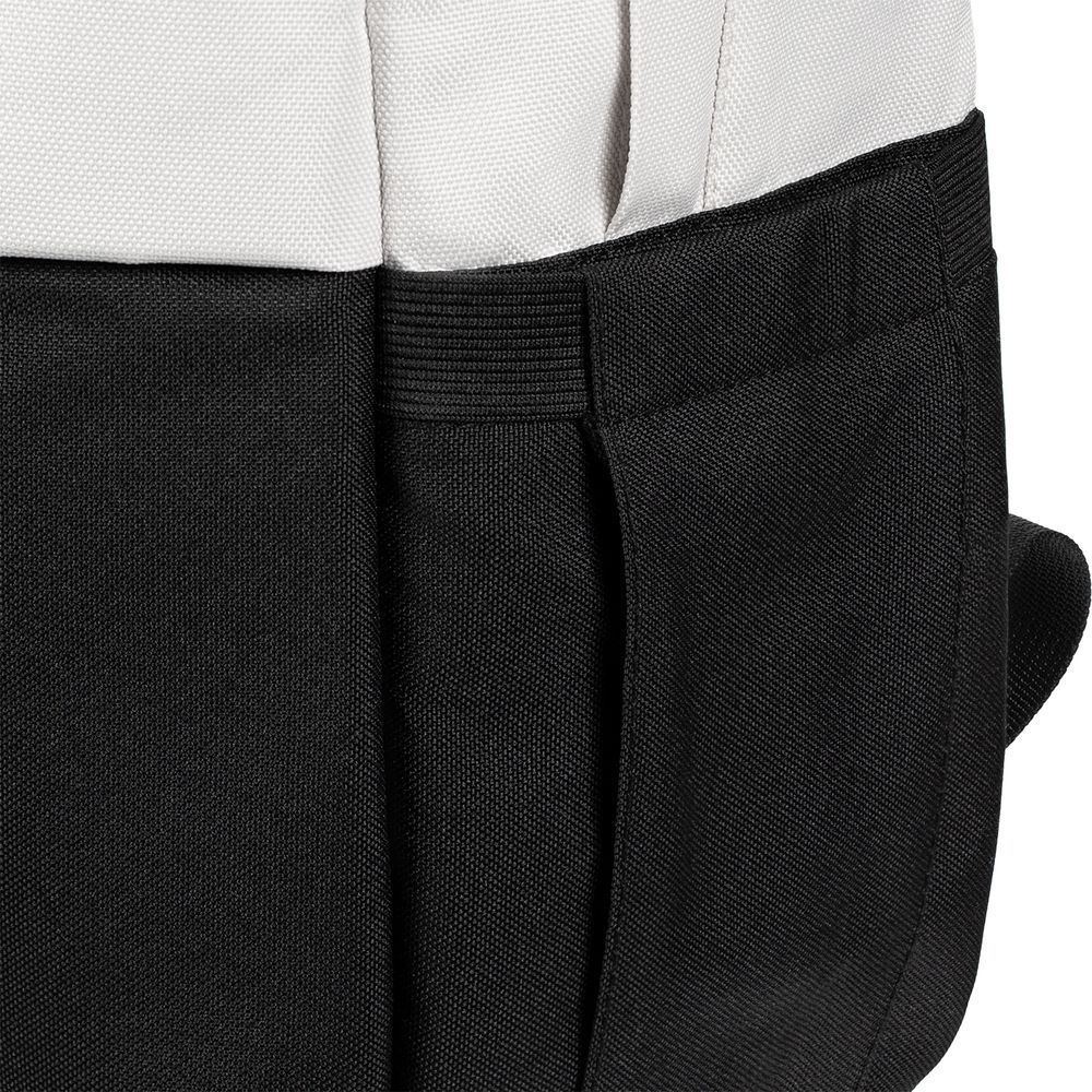 Двухцветное исполнение с темным низом и более светлым верхом, с одной стороны, помогает рюкзаку дольше сохранять опрятный внешний вид, а с другой — позволяет активнее и контрастнее выделить логотип компании.