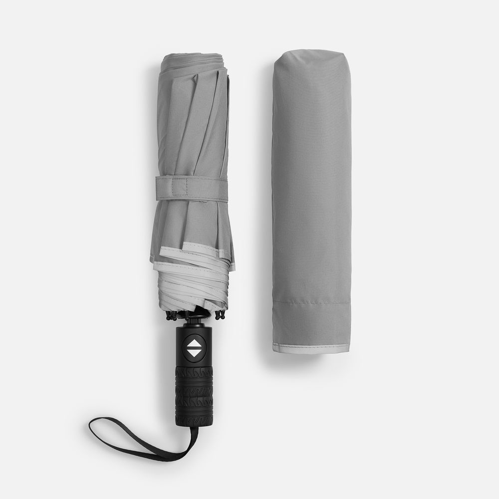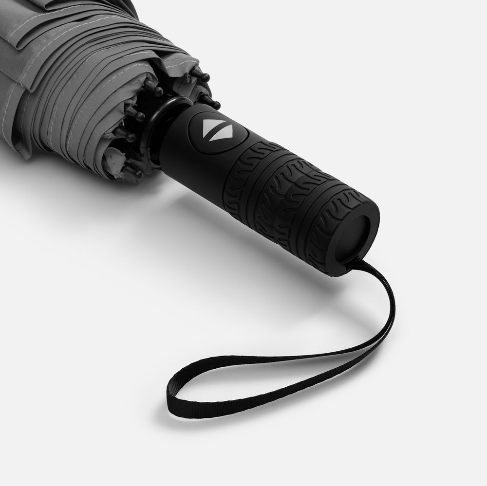 Стильный прочный зонт Tyre не боится ржавчины и нагрузок благодаря каркасу из стекловолокна. Светоотражающий кант делает этот зонт незаменимым спутником в темное время суток, а тактильный рисунок протектора шины на ручке превращает его в продуманный подарок для всех автолюбителей и партнеров этой сферы.