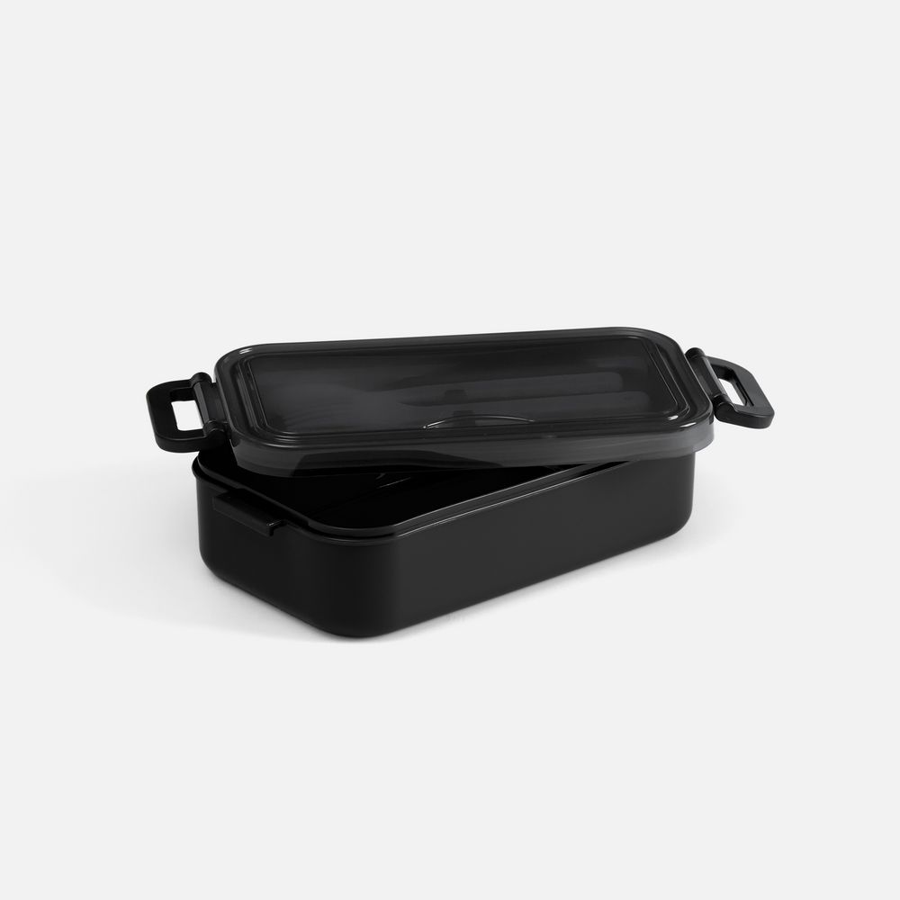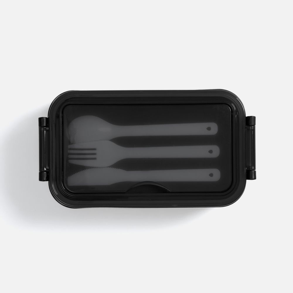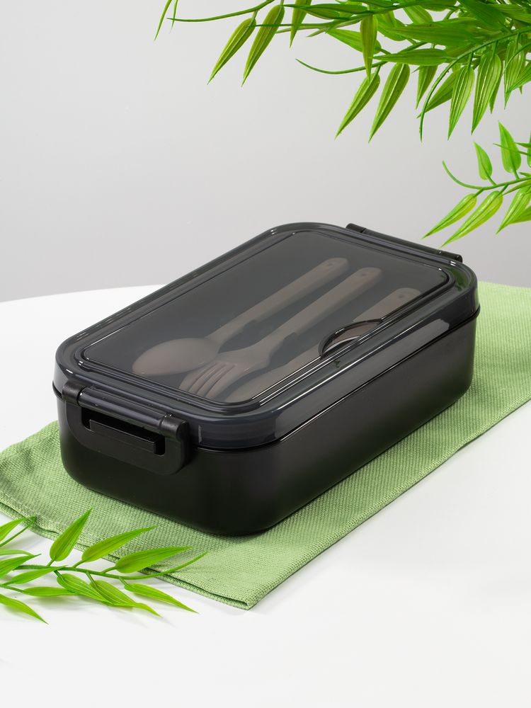 Удобная конструкция с крышкой на защелках обеспечивает надежную фиксацию. Специальное отделение под крышкой позволяет хранить столовые приборы, освобождая дополнительное пространство в сумке.