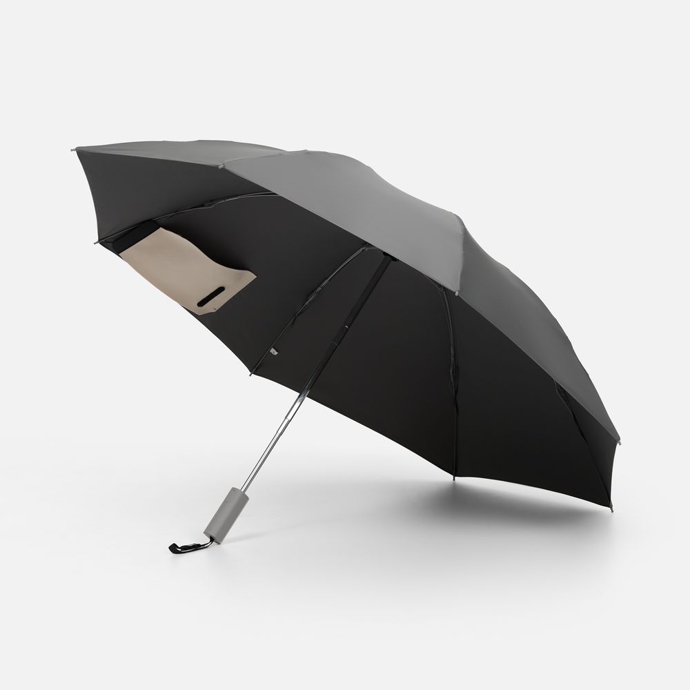 Складываясь после дождя, он прячет мокрую поверхность внутри, а сухая остается снаружи: в закрытом положении зонт не побеспокоит окружающих и не намочит одежду. Благодаря застежке на ремешке зонт удобно подвесить, например, на рюкзак.