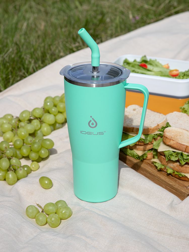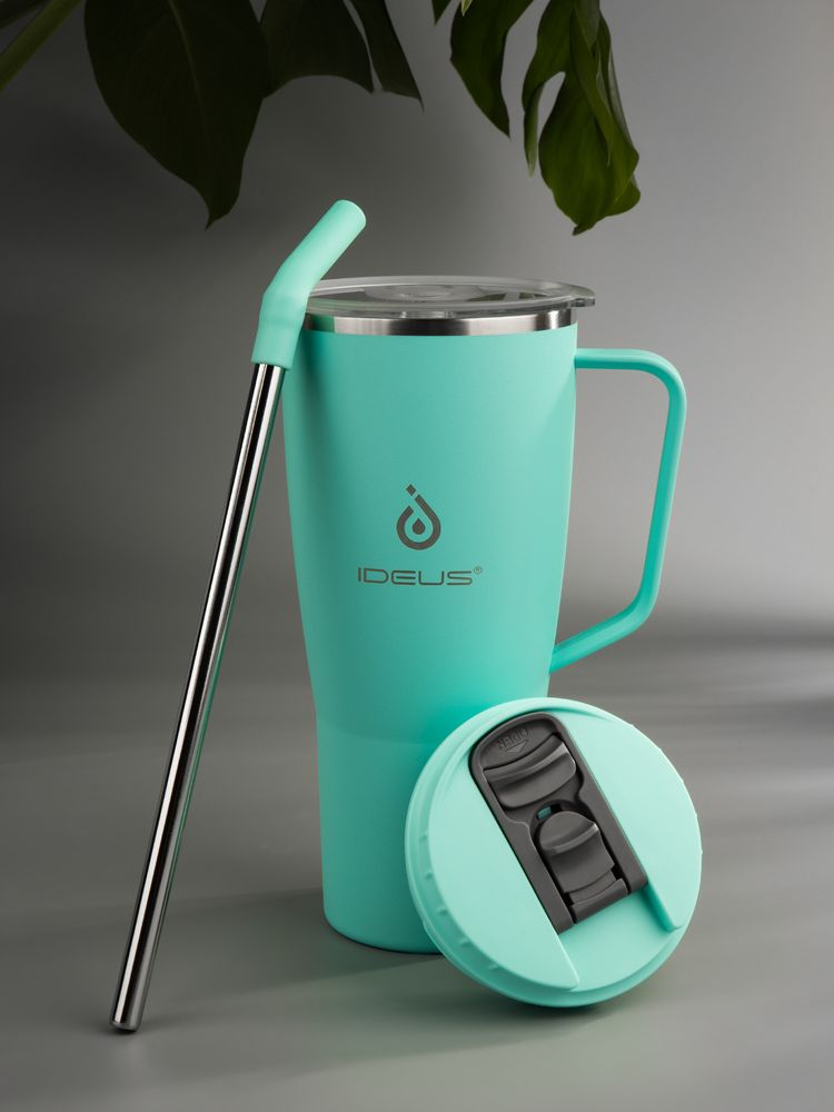 - 2 крышки в комплекте: одна на 100% герметичная с механизмом блокировки отверстия для питья, вторая — с отверстием для трубочки