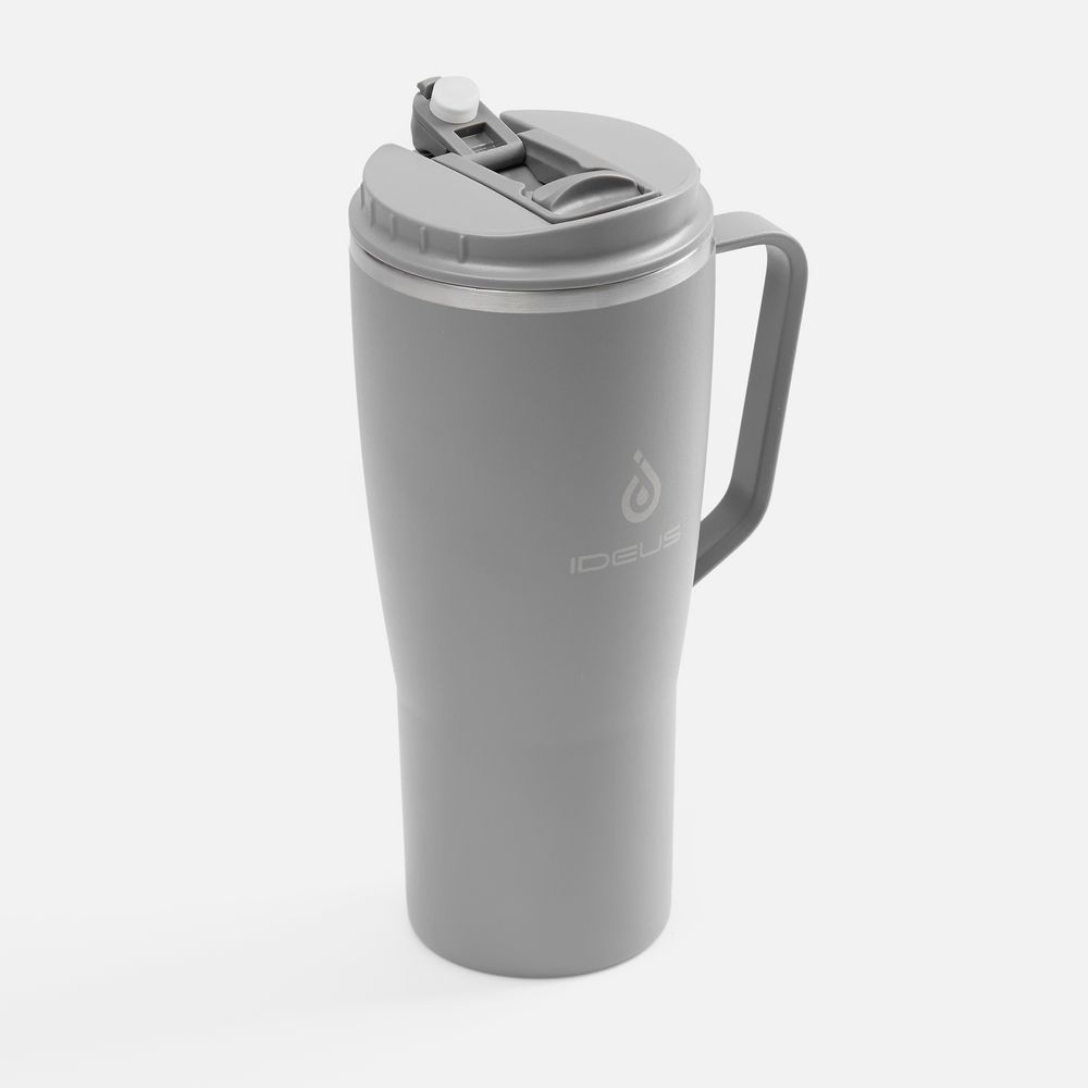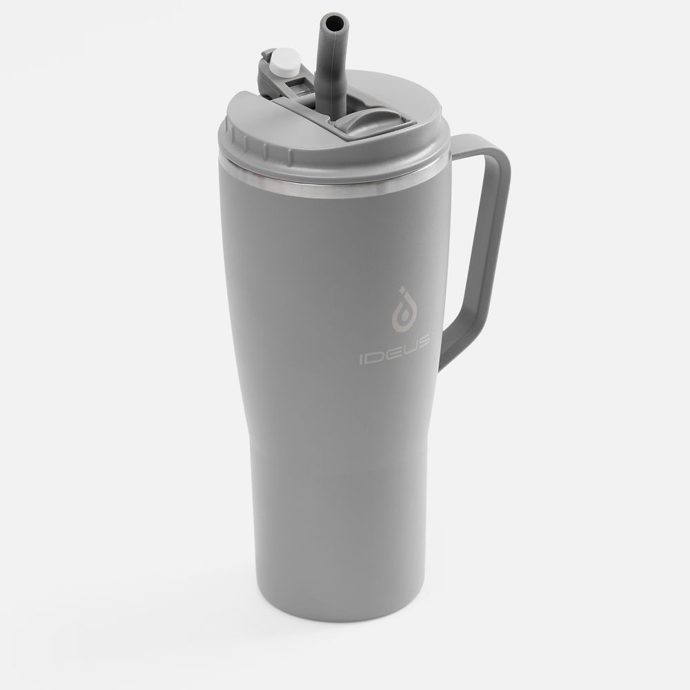 - 2 крышки в комплекте: одна на 100% герметичная с механизмом блокировки отверстия для питья, вторая — с отверстием для трубочки