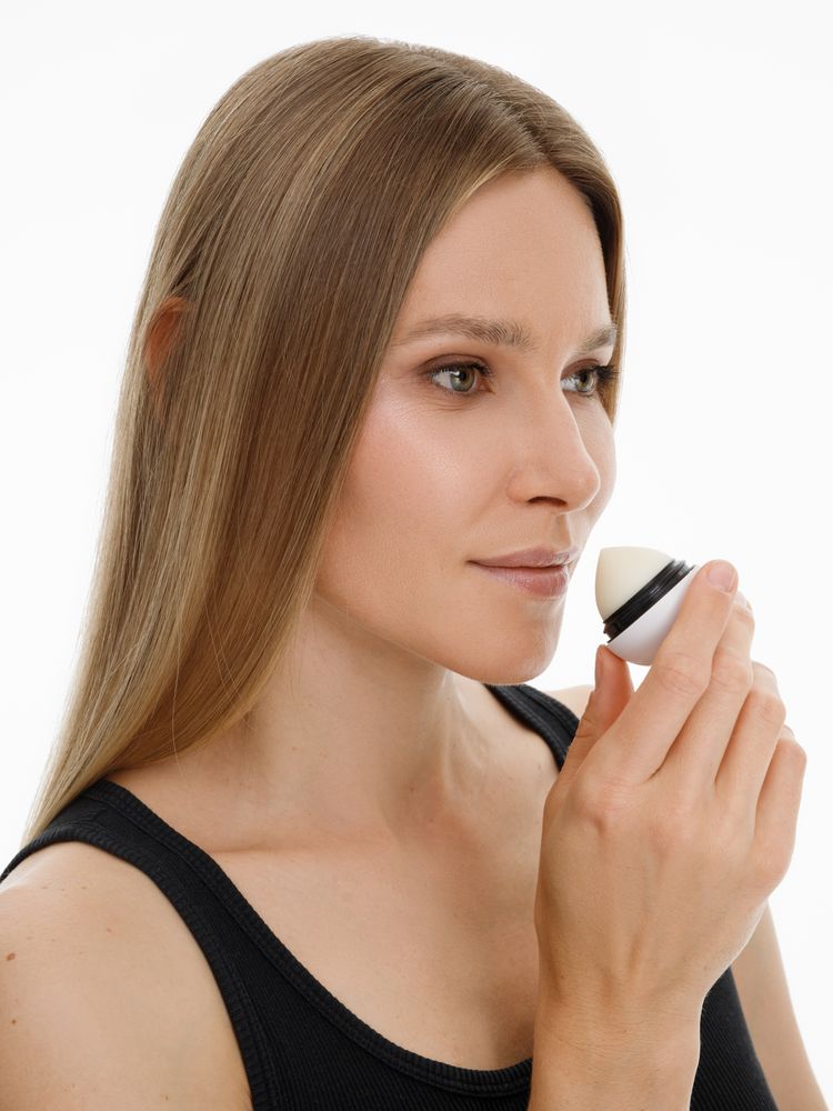Ухаживающий бальзам для губ с аппетитным ароматом кокоса и сливок.