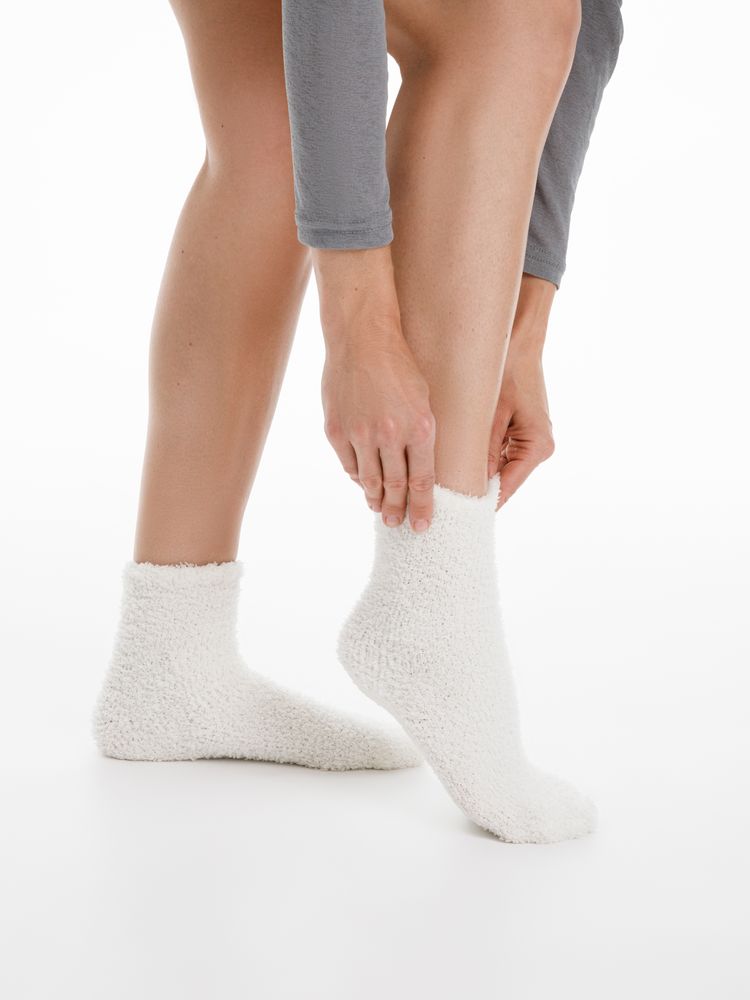 Пушистые носки Flaum — это не просто аксессуар, а настоящее объятие для ног, которое подарит заботу и уют в любое время года. Удлиненная форма и согревающий материал не дают ногам замерзнуть, а мягкая текстура приятно ощущается на коже, создавая максимальный комфорт даже в самые холодные дни.