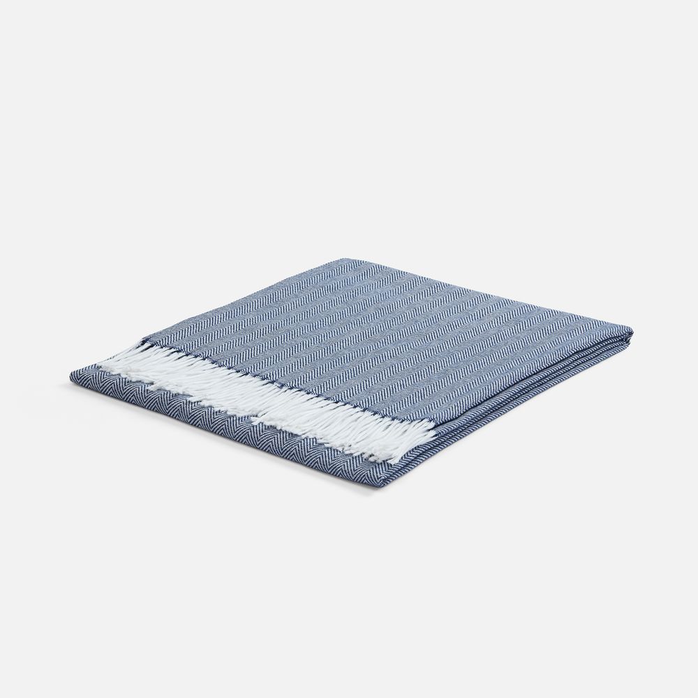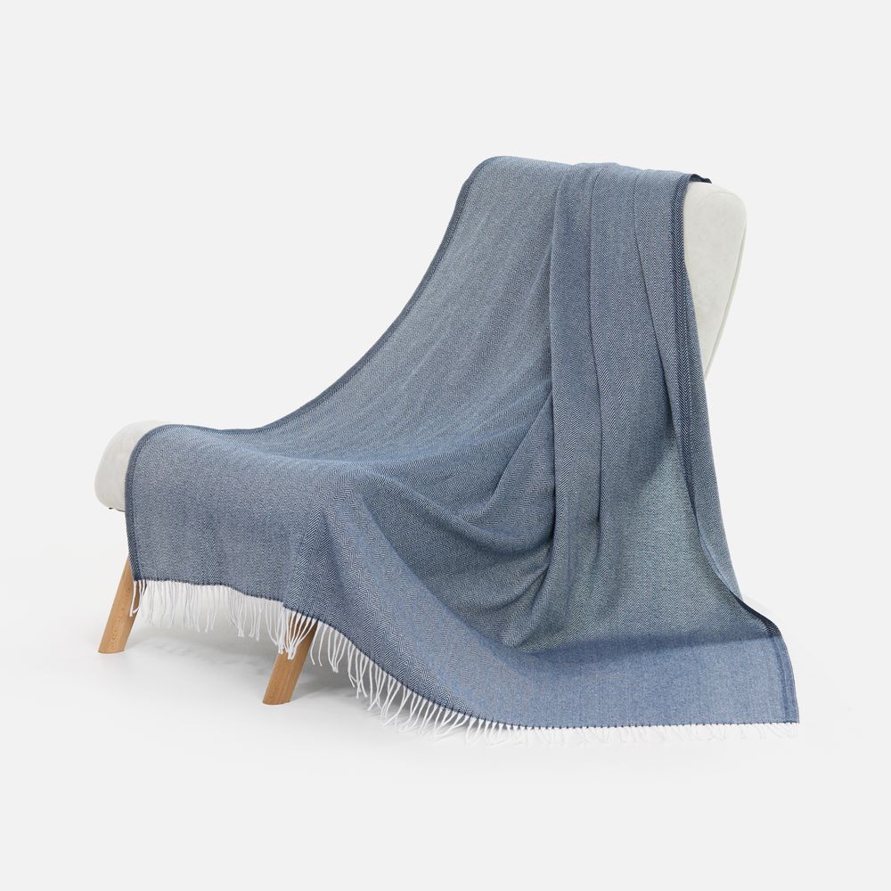 Классический рисунок «елочка» не слишком привлекает внимание, но в то же время добавляет изюминки. Смешанный состав пряжи продлевает срок службы и существенно облегчает уход за пледом.