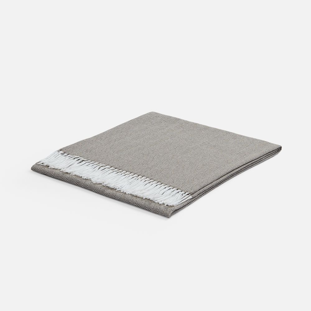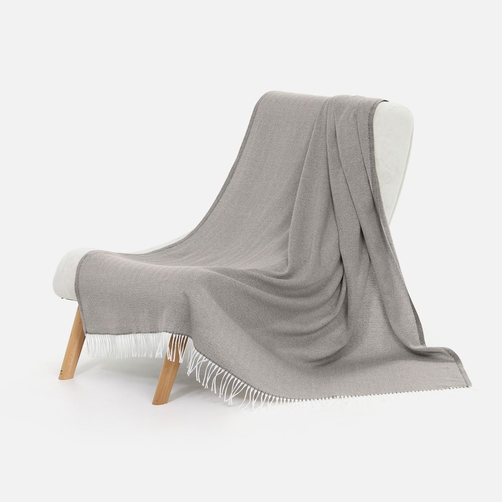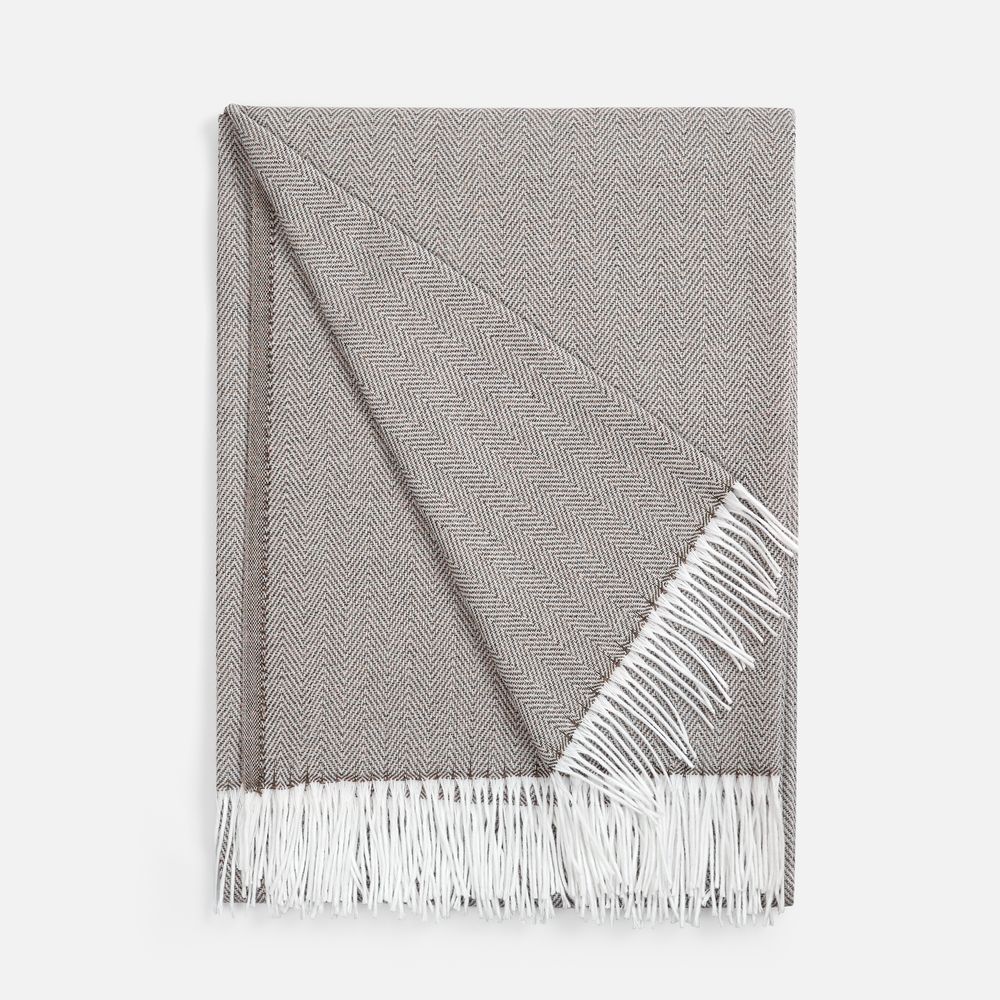 Классический рисунок «елочка» не слишком привлекает внимание, но в то же время добавляет изюминки. Смешанный состав пряжи продлевает срок службы и существенно облегчает уход за пледом.